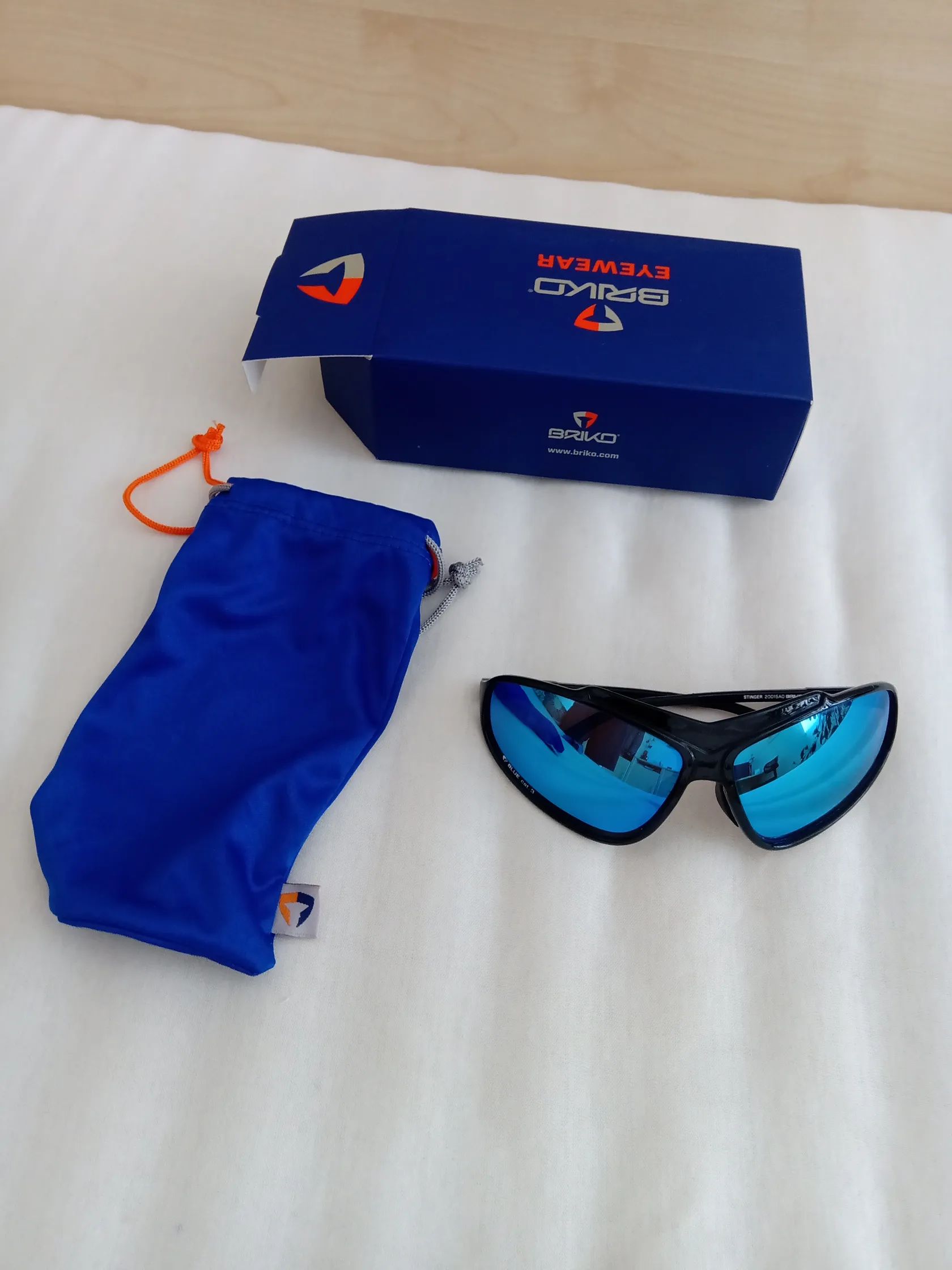 Predám nové okuliare BRIKO stinger, rám čierny lesklý, sklá modré zrkadlové cat. 3, aktuálne foto, osobne alebo plus prípadné poštovné.