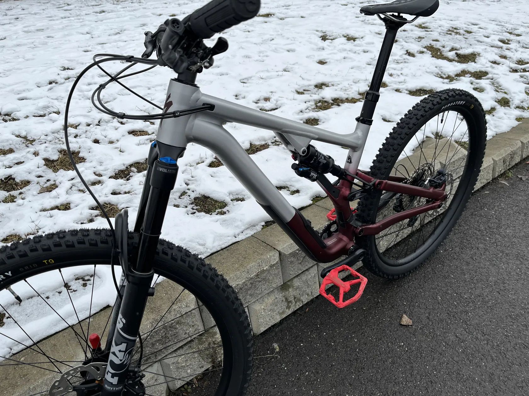 Odpružení: Fox 36 Performance (160 mm) + Fox Float X (150 mm) – kvalitní, schopný set pro trail/enduro.