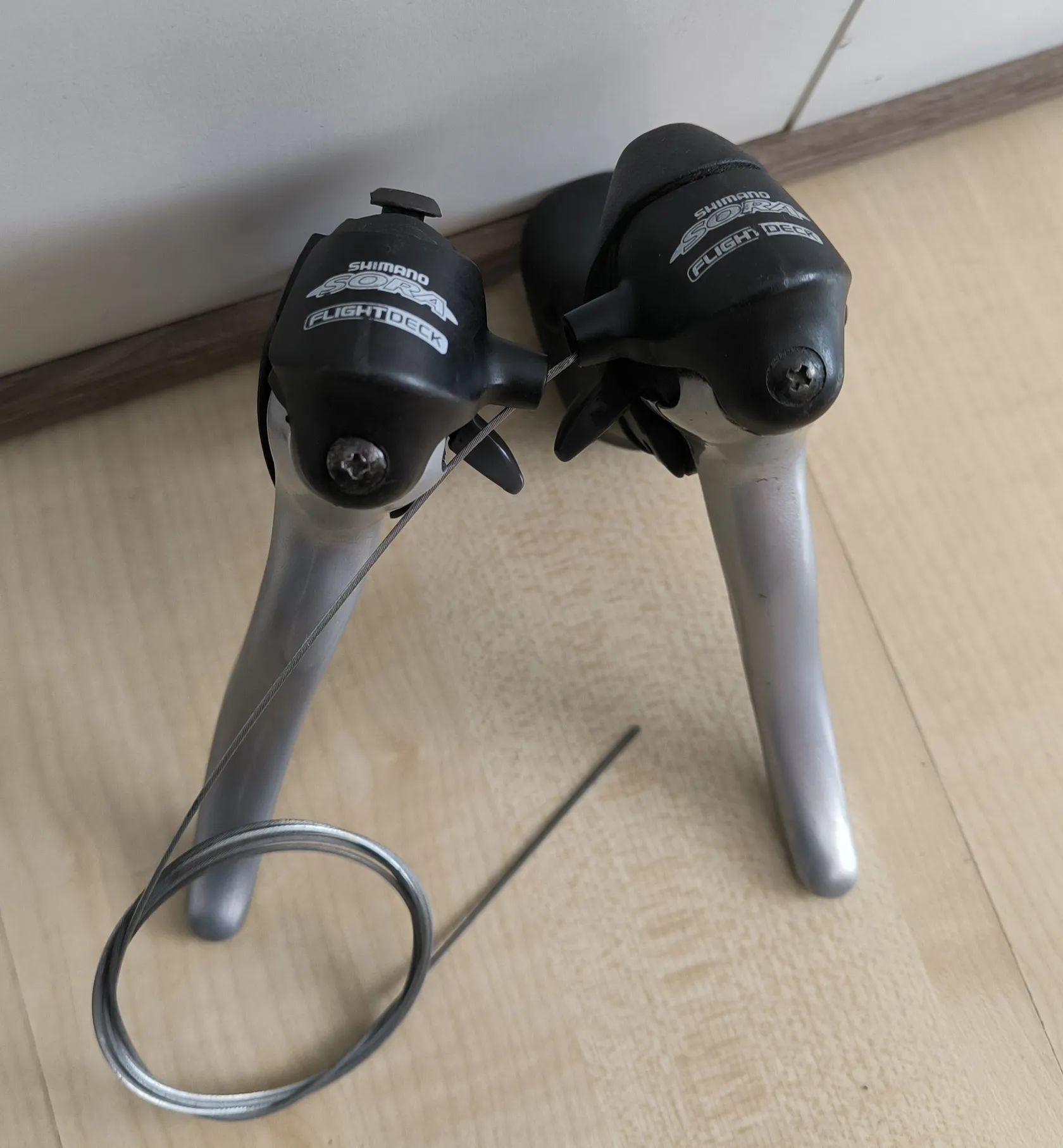 Dualy Shimano Sora 3x8 , levá páka v pohodě, pravá nemá gumu a občas necvakne všech 8 poloh v ruce, třeba to bude se šaltrem ok. Na pokusy. Možno osobně Praha 8 v pracovní dny nebo zasilkovna s platbou předem.