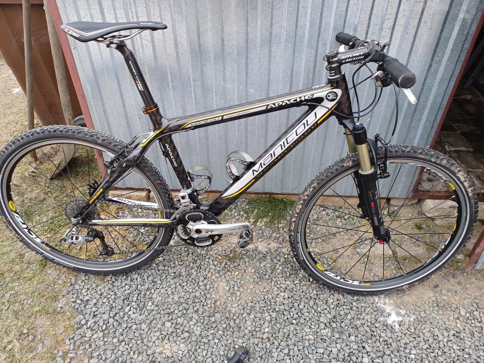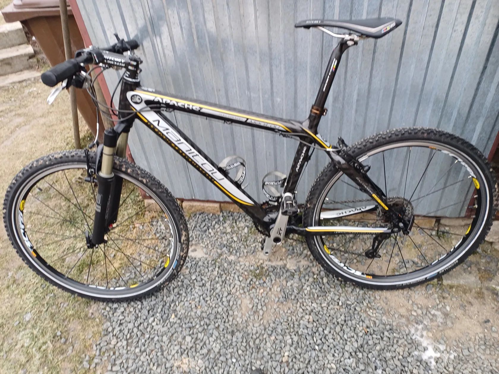 Jedinečný top model firmy Apache, váha kola 9,5 kg. Výborný stav celokarbon včetně sedlovky a riditek s predstavcem. Veterán ve výborném stavu, jede velmi pěkně. Rok 2008 plně servisovany.