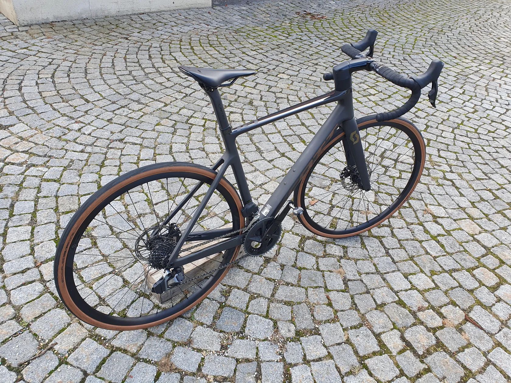 KLÍČOVÉ VLASTNOSTI Karbonový rám Addict RC Disc HMX Vidlice Addict RC HMX SRAM RIVAL eTap AXS Disc, 24 rychlostí Pláště Schwalbe ONE Race-Guard
