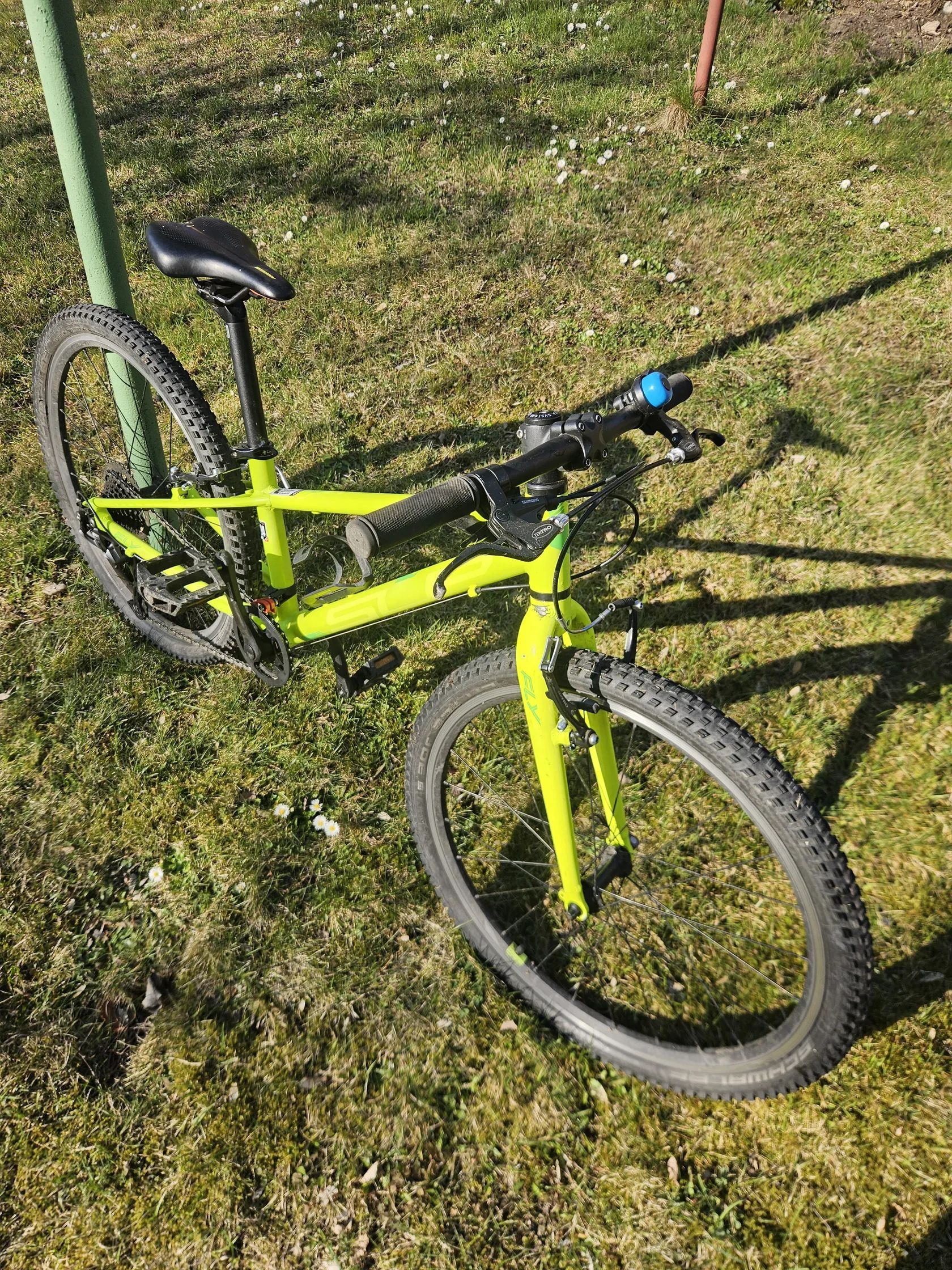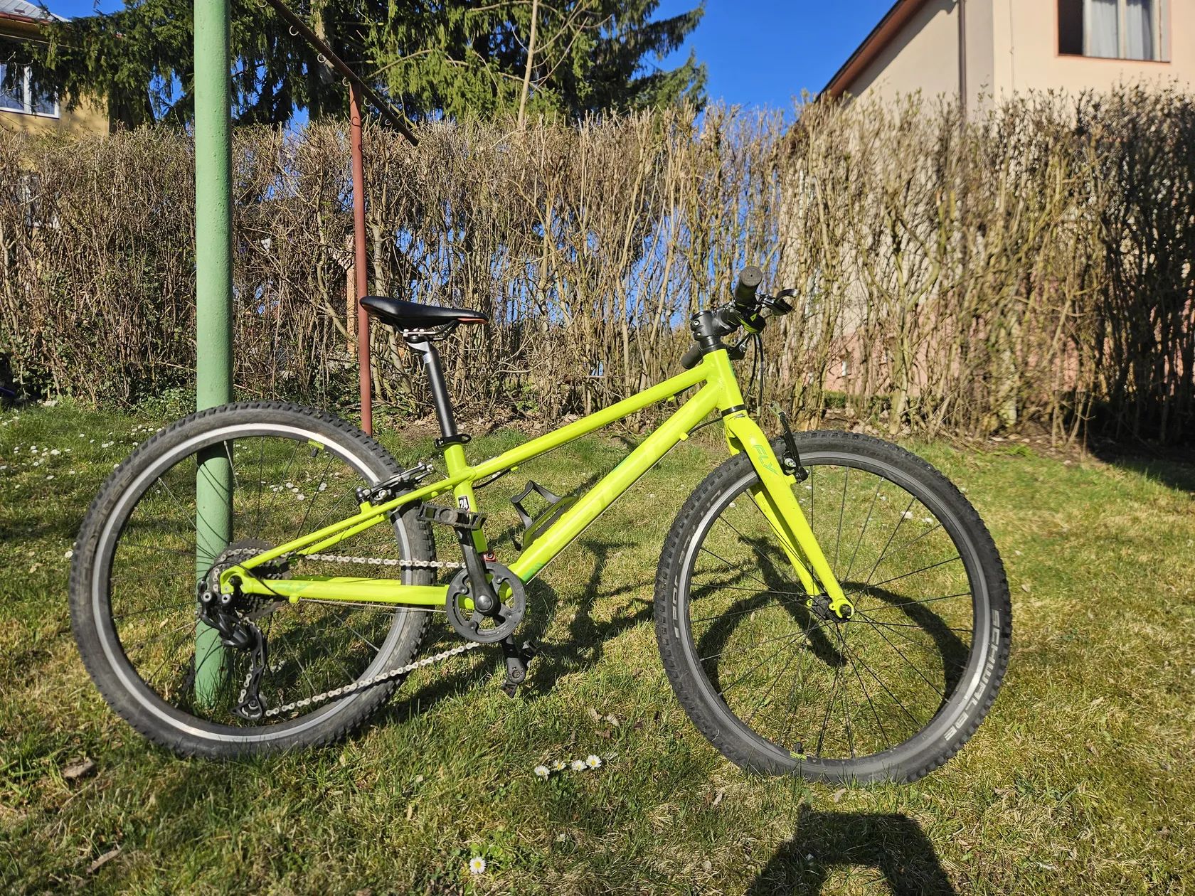 je na dětské 24" kolo poměrně nízká, usnadňuje manipulaci i jízdu do kopce