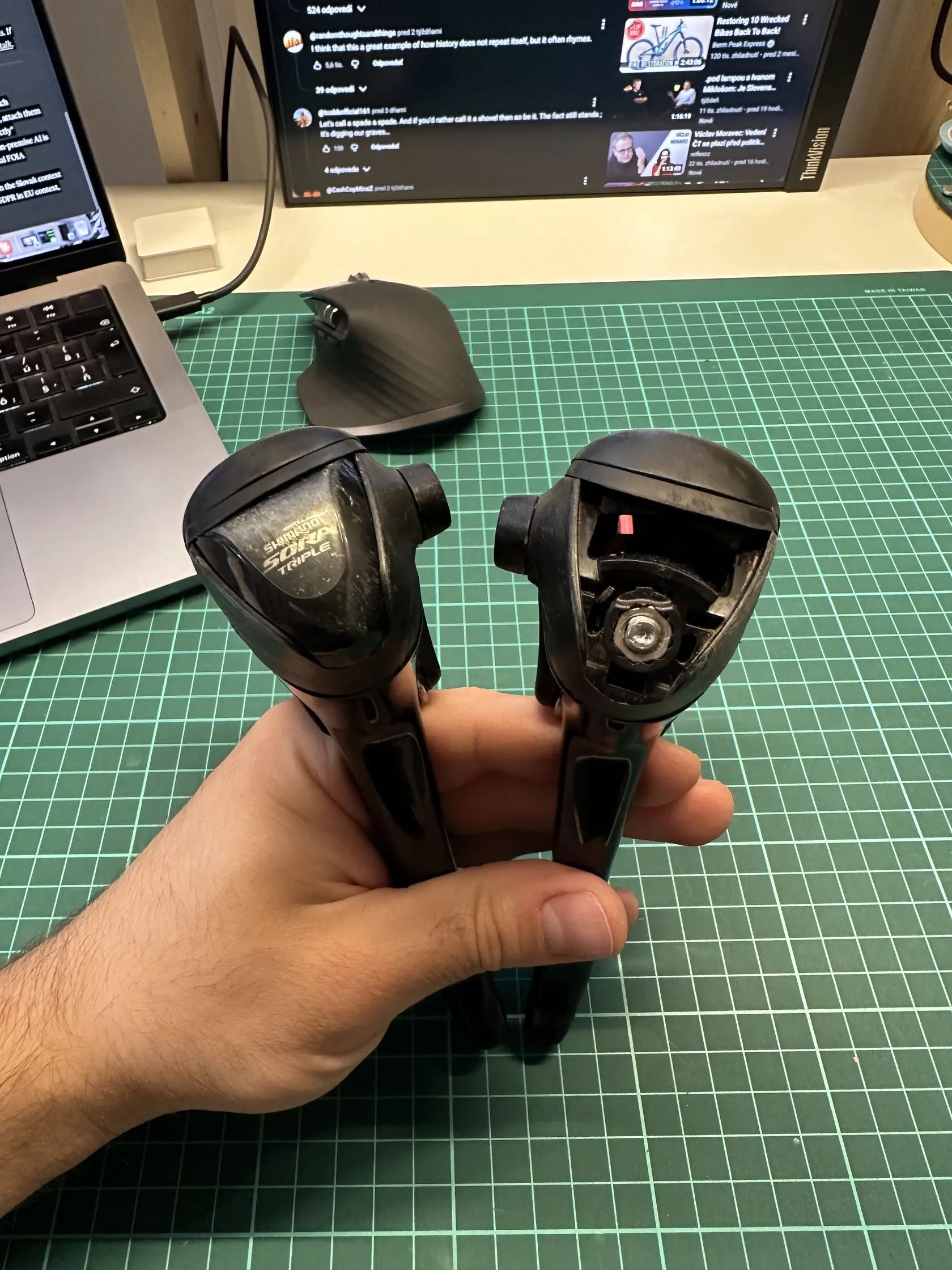 Zdravím, predám Sora 3500 a 3503 páky. Vizuálne už majú niečo odžité (hlavne na jednej chýba krytka), ale mechanicky sú v poriadku. Používal som ich ako dočasnú náhradu za Tiagra 2x9 páky (majú rovnaké pull ratio ako Tiagra 4500).