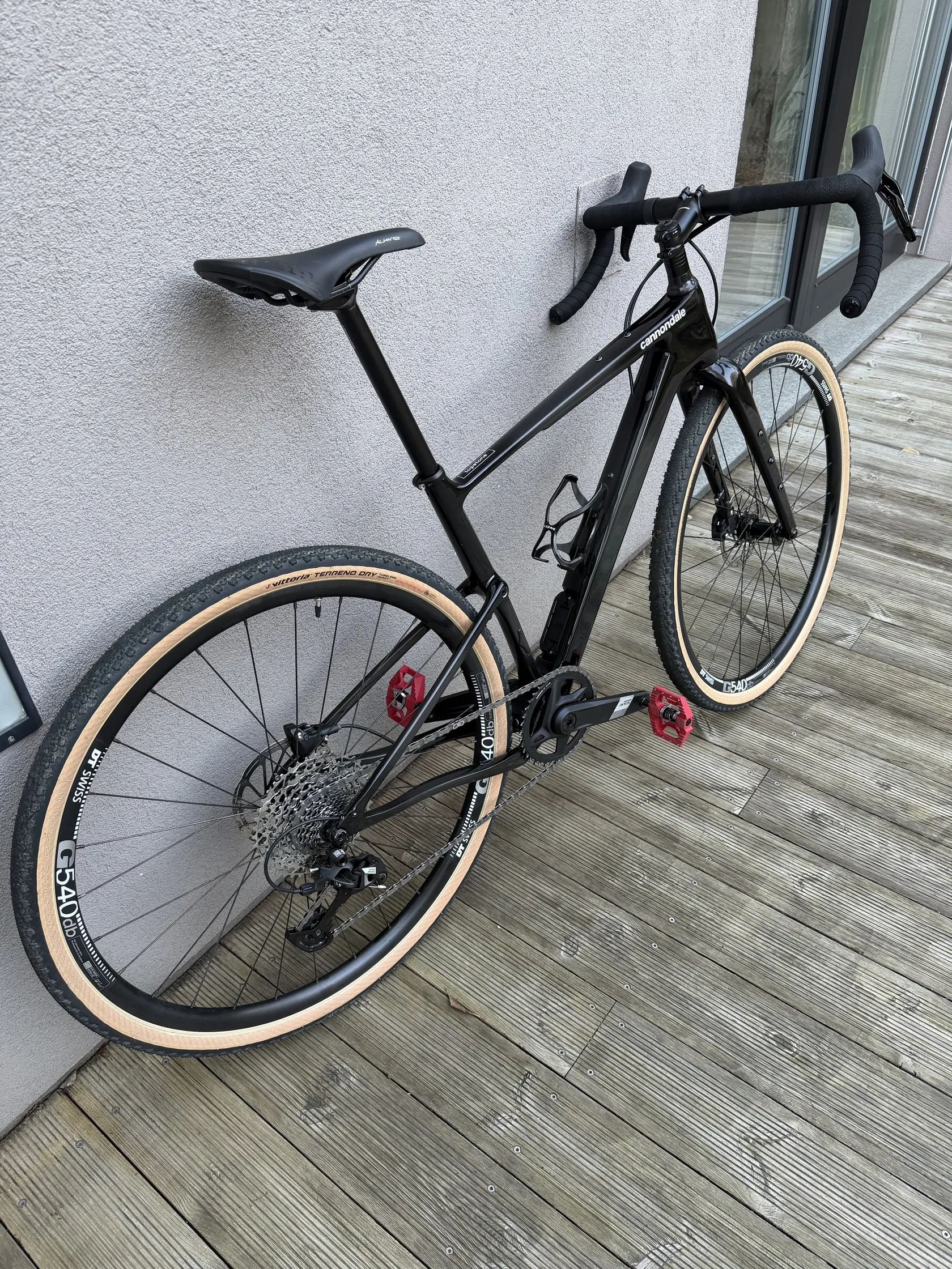 Karbonový rám a vidlice, gravel kola DT Swiss G540, pláště Vittoria Terreno Dry 700×38c tubeless ready – sportovní, rychlé osazení na šotolinu a asfalt.