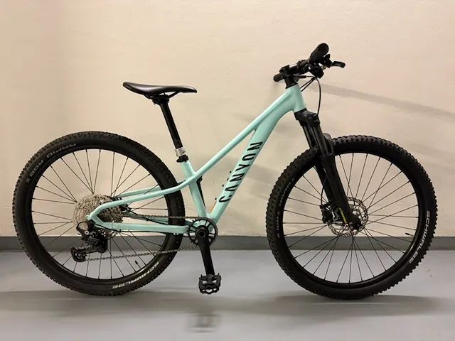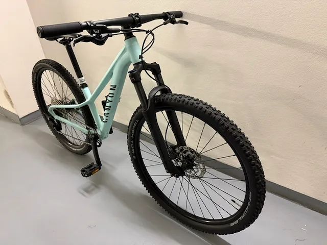 Prodám Canyon Grand Canyon 5 WMN. Dámská geometrie, barva "mint", velikost 2XS (pro jezdce do cca 152cm), Shimano Deore 12 speed, vidlice SR Suntour XCR 100mm, vše původní/zánovní. Najeto do 200km, dcera příliš rychle vyrostla. Prefefuji osobní předání v Praze, případně po dohodě Č.Budějovice/Jablonec/Liberec.