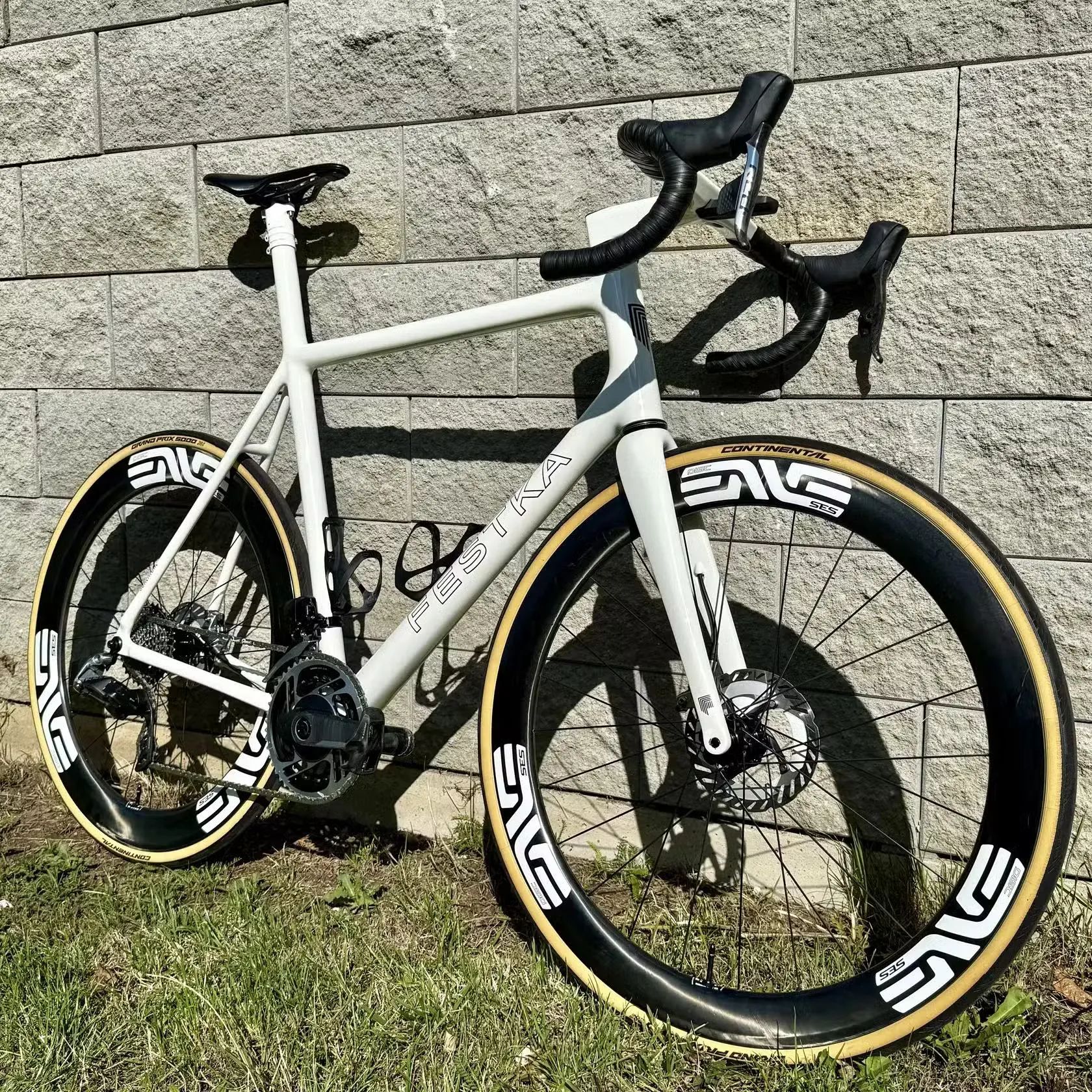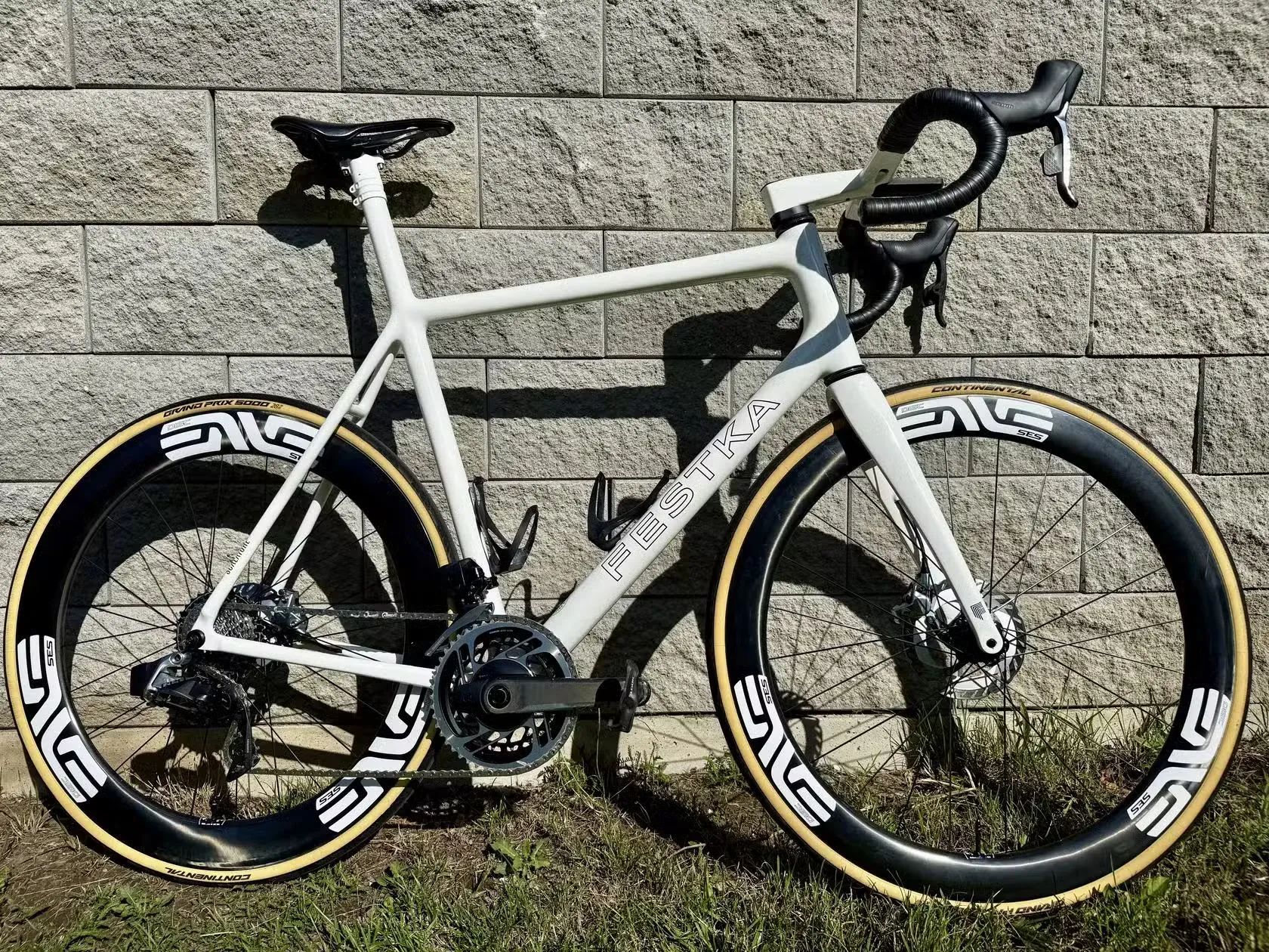 Prodám luxusní silniční kolo Festka Scalatore, vlajkový model značky. Jedná se o poslední aktuální generaci, která již má plně integrované vedení kabelů. Integrovaná sedlovka (ISP) bude nejlépe vyhovovat jezdcům s výškou cca. 190-195 cm. Je ale případně i možné si nechat přímo ve Festce ISP uříznout a místo ní dát klasickou sedlovku, se kterou už by kolo mělo vyhovovat jezdcům s vyšší spektrem výšky (185-200 cm). Kolo je používané necelé tři sezony, po celou dobu profesionálně servisované. Barva lesklého laku je Off White, branding v odstínu Carbon Black. Osazeno sadou Sram RED eTap AXS 2x12. Sada zapletených kol Enve SES 5,6C DISC, ručně vyráběný vlajkový model značky Enve. Integrovaný kokpit Deda Alanera. Sedlo Selle Italia SLR Superflow s karbonovými ližinami. Omotávka Silca Nastro Cuscino 2,5 mm. Kolo je k dispozici v Praze-Čakovicích.