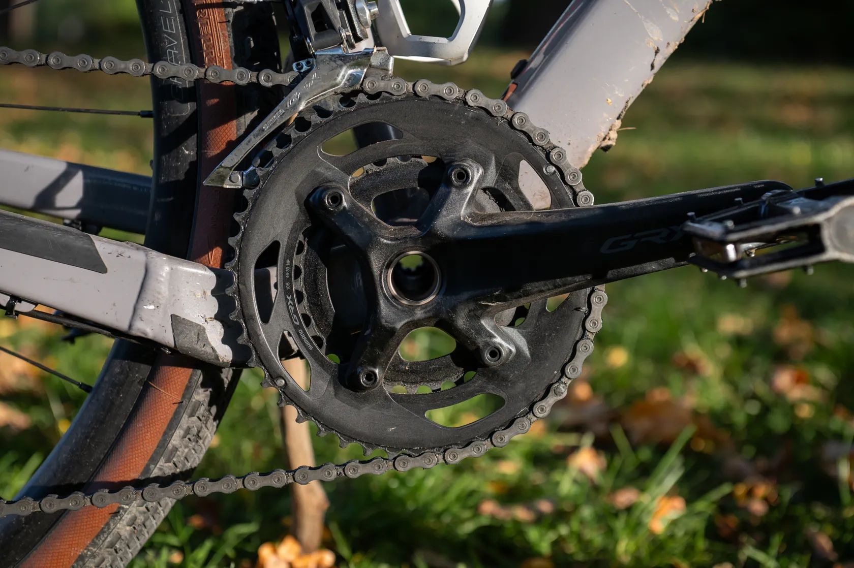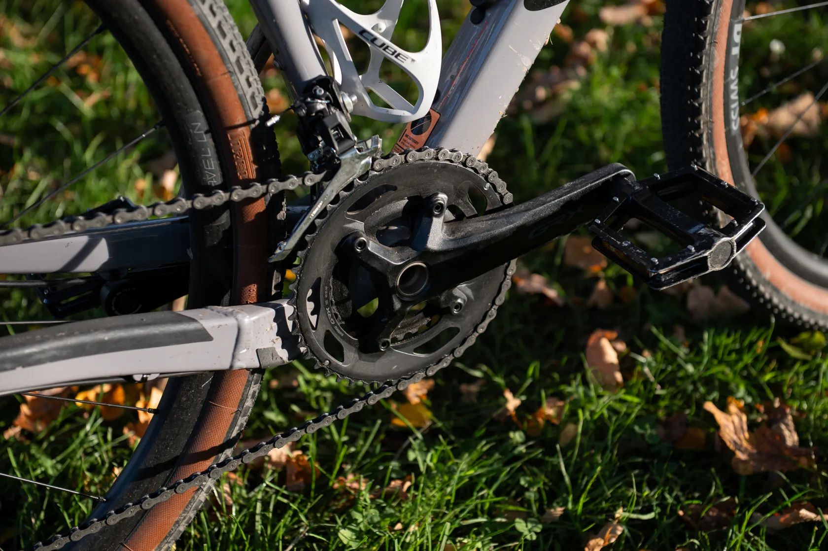 Na řídítkách nové gripy, bezdušové pláště Pirelli Cinturato Gravel jeté jednu sezónu. Osazení: Shimano GRX 2×11, hydraulické brzdy GRX, karbonová vidlice a sedlovka, kola DT Swiss + ploché pedály (platformy), na kterých to při prodeji může zůstat.
