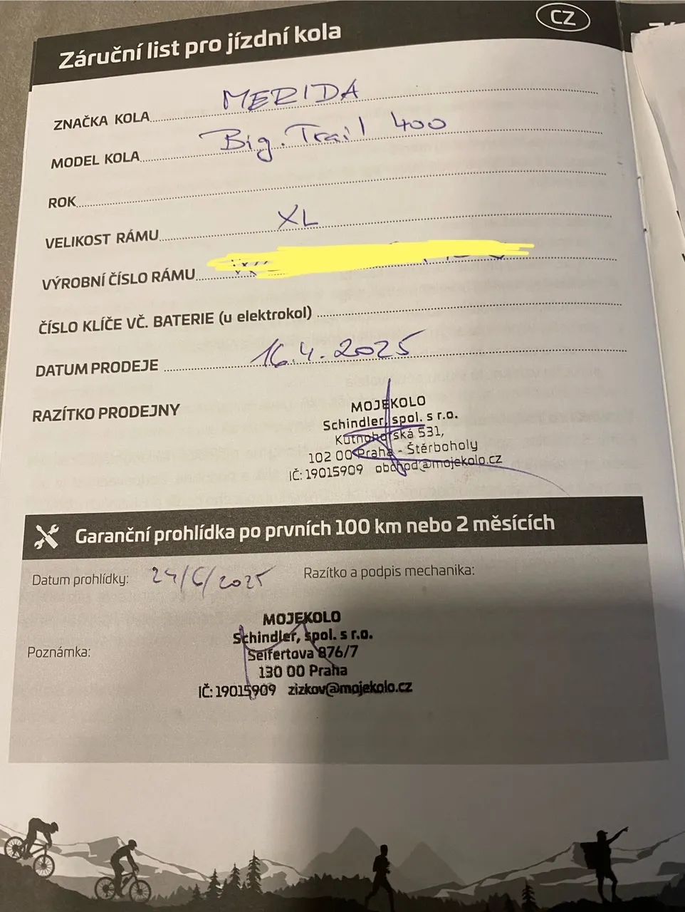 Prodám kolo Merida Big Trail 400, silk bronze. Velikost XL, zdvih 140mm, teleskopická sedlovka. Specifikace tato: https://www.merida-bikes.com/cs-cz/bike/4095/bigtrail-400 Kolo kupované přes Mojekolo v Praze v dubnu/2025. Garančka v červnu/2025. Naježděno tak 500km. Polovina silnice a polovina flow traily. Oděrky odpovídající použití, ale jinak je vše v pohodě. Viz foto (z dneška) Předání Praha. Původní cena 24 990 Kč prodám za 17 500 Kč.