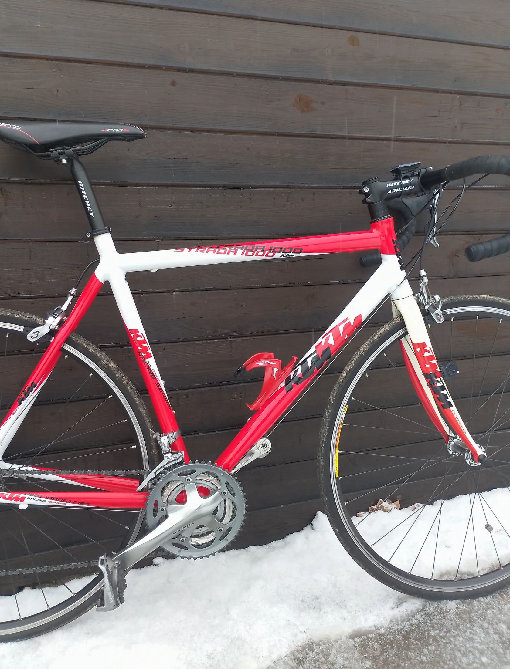 Prodám silniční kolo KTM, velikost 57 (já měřím 178cm), osazeno Shimano Tiagra, řazení Shimano 105 3*9.Kolo je starší, bez závad, málo jeté, minimální známky používání, ponechán pedály a tachometr.