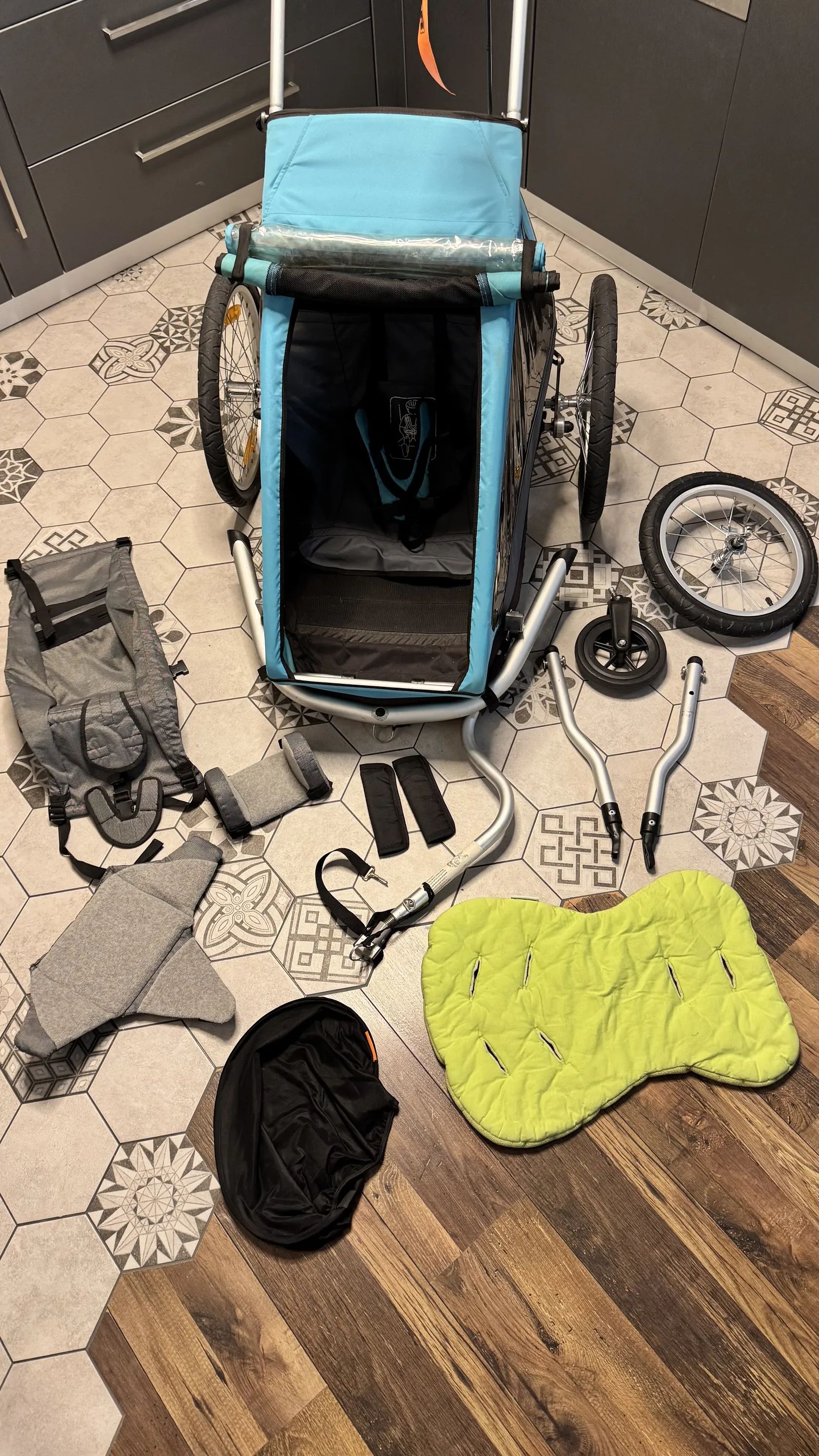Prodám vozík v pěkném stavu, pár odřenin z běžného používání. Je to super koráb do terénu i na dlouhé výlety. Ideální je i jako vozík za kolo a použít jde i k běhání. Set je včetně odpružení, miminkovníku, opory hlavy a trupu, extra polstrováním a clonou proti slunci. Předání ideálně Litoměřice, Roudnice n. L.