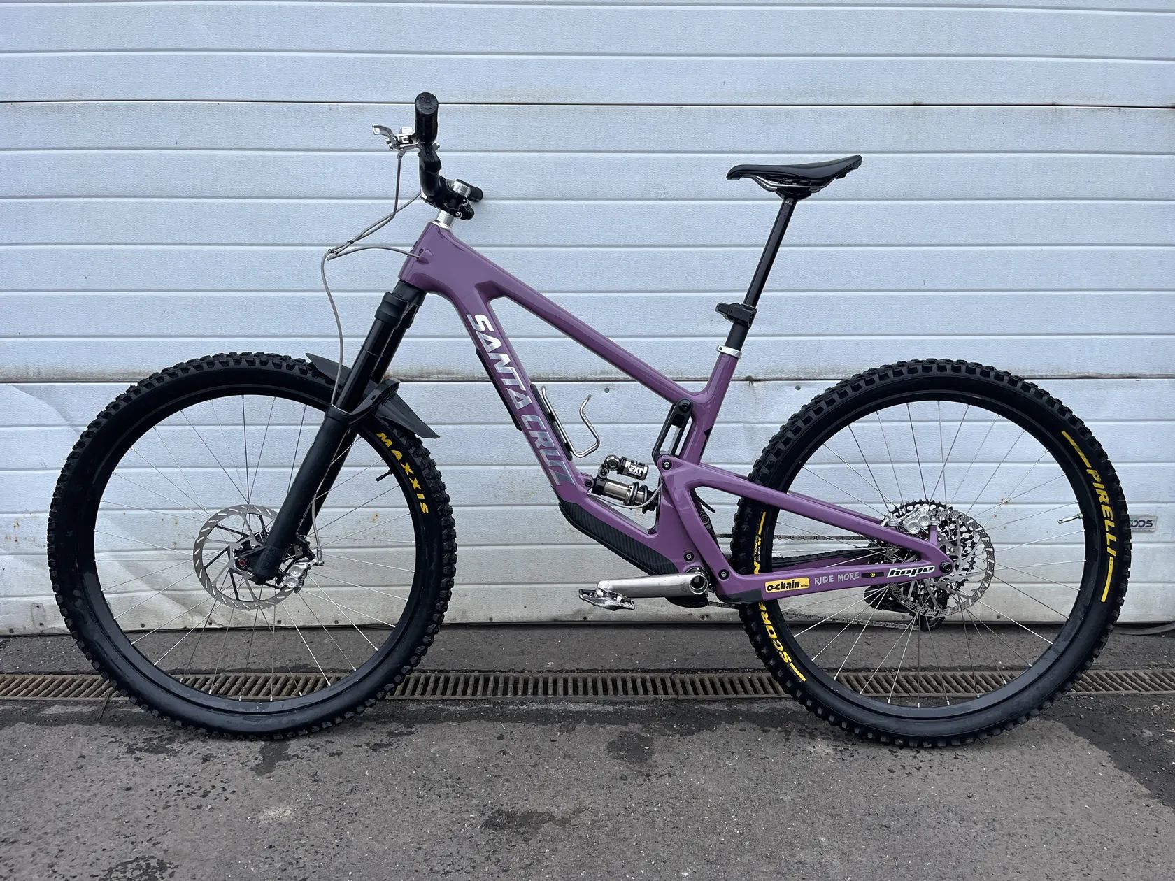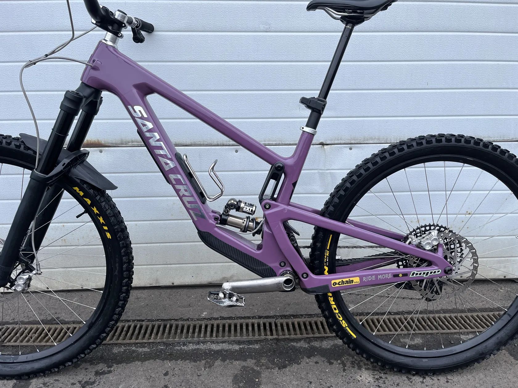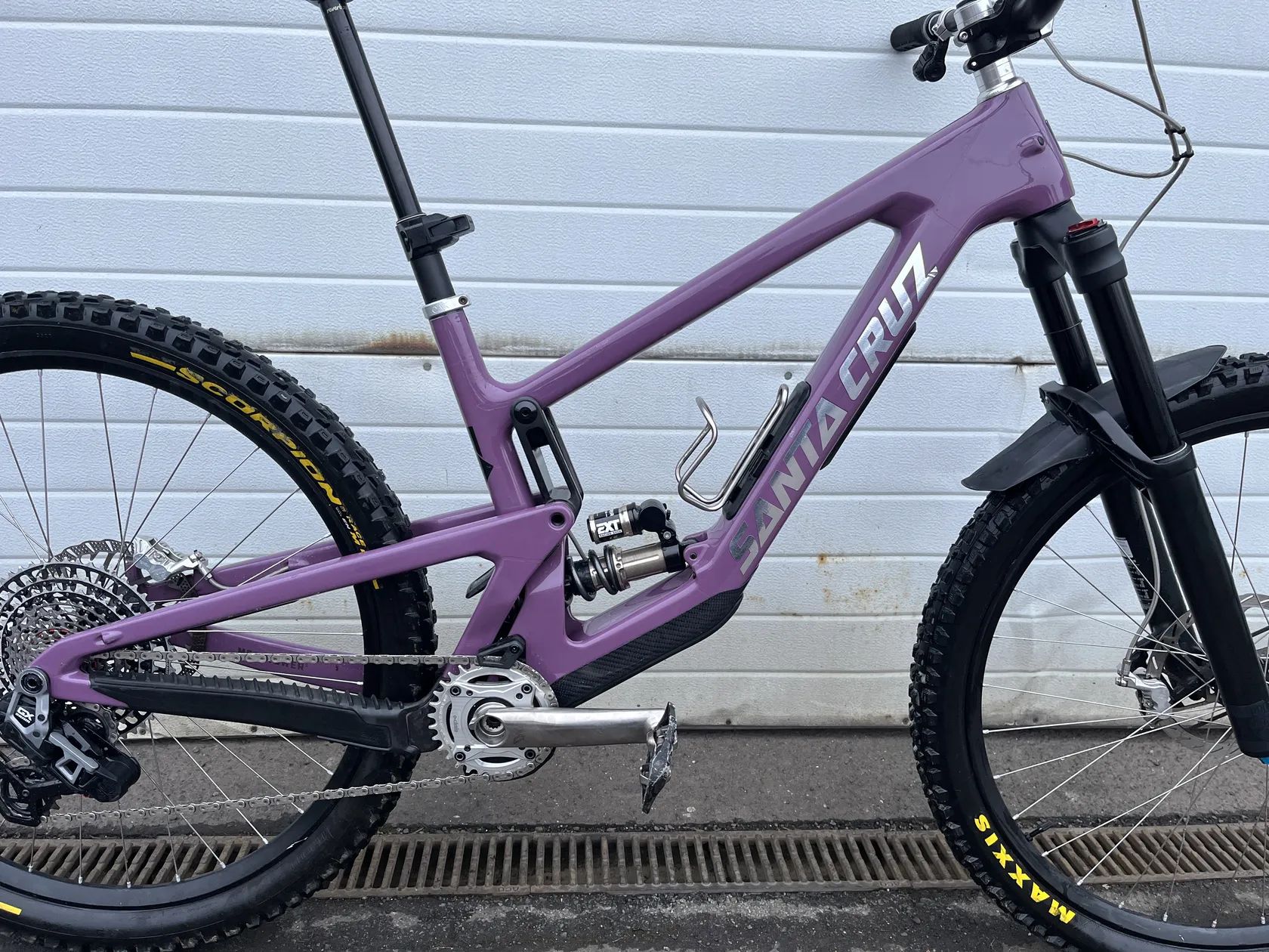 Součástí prodeje je: rám, tlumič EXT, pružina EXT, sedlová objímka Santa Cruz (černá), kryt Glove boxu a do něj dva originální organizéry, zadní osa Burgtec, patka Sram UDH a přídavná karbonová ochrana spodní rámové trubky Rock Guard (již nelze zakoupit).
