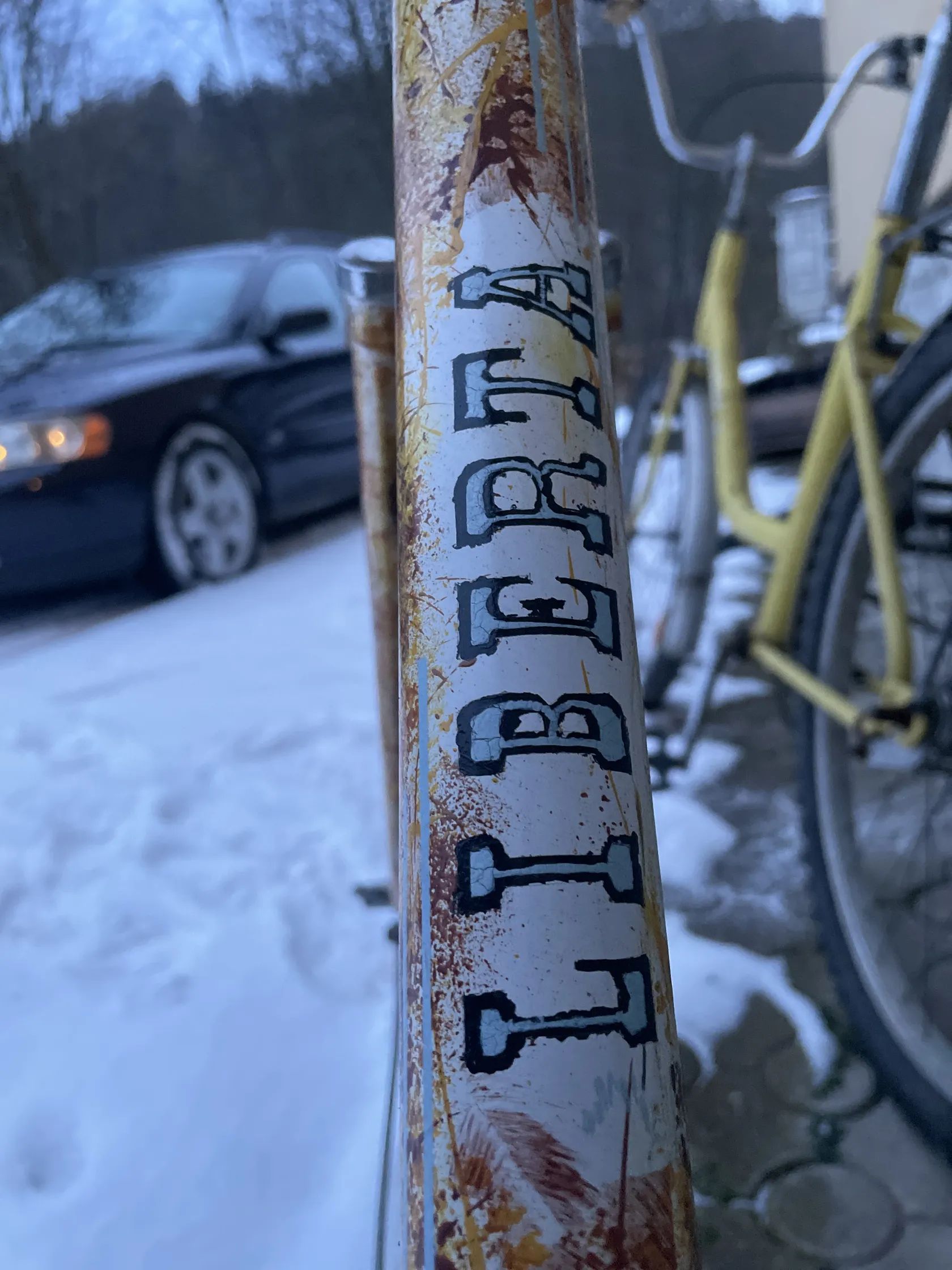 rám a vidlice nově lakované (základ + design + 2× bezbarvý lak)