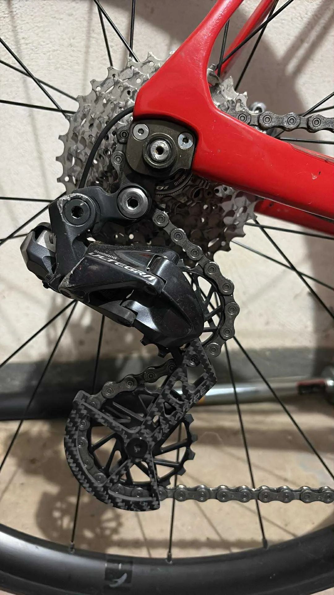 lehký karbonový rám Elektrické řazení Shimano ultegra di2 Keramické vodítko Nova ride Převodníky 52-36 Kazeta 11-32 Sedlo specialized power Zapletená kola Fulcrum