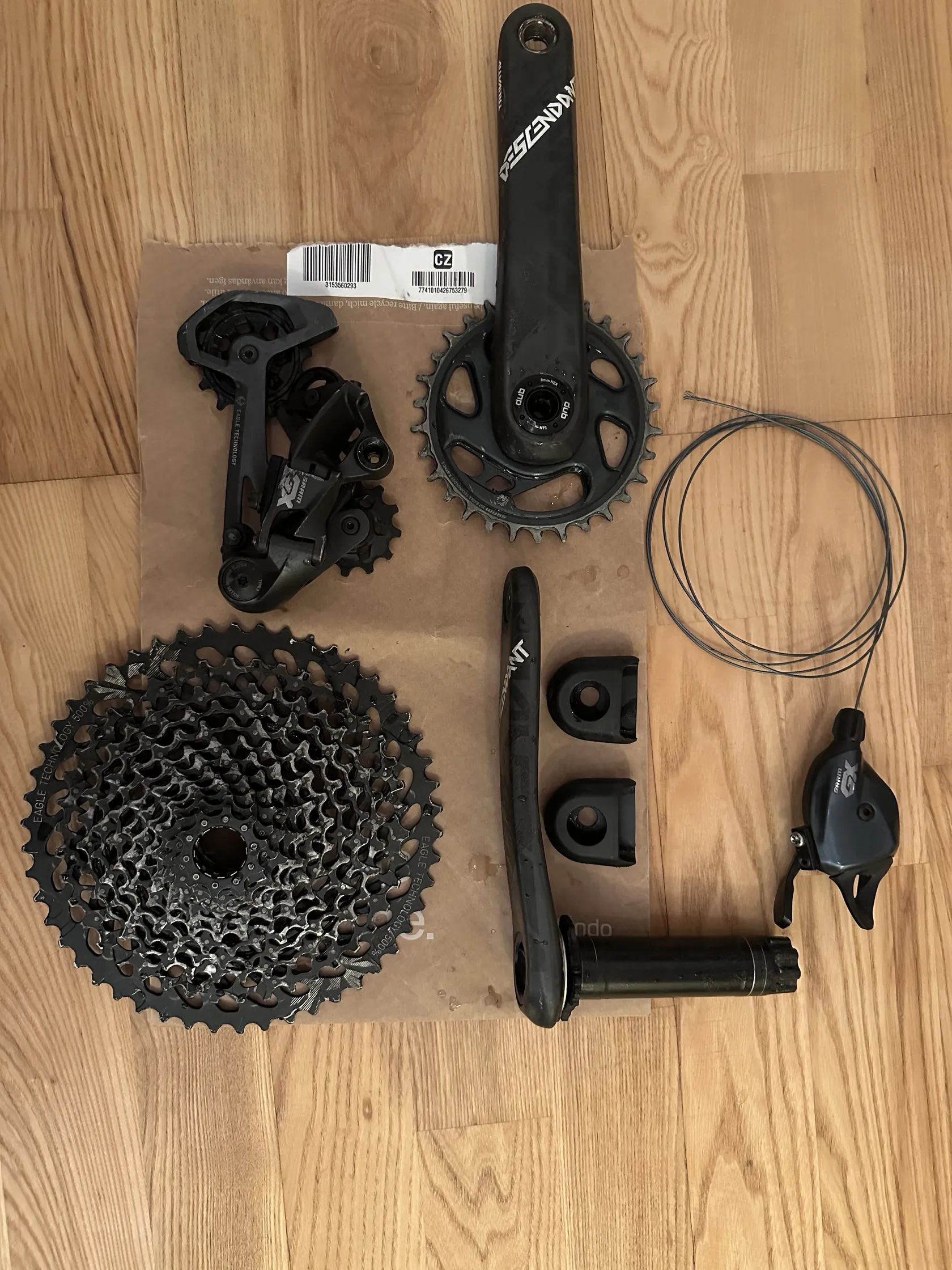 Prodam z duvodu prechodu na elektriku karbonove kliky truvativ descendant 175mm vcetne sady sram gx. Kazeta rozsah 10-50t. Vse plne funkcni a jete cca 1500km. Prevodnik je 30t.