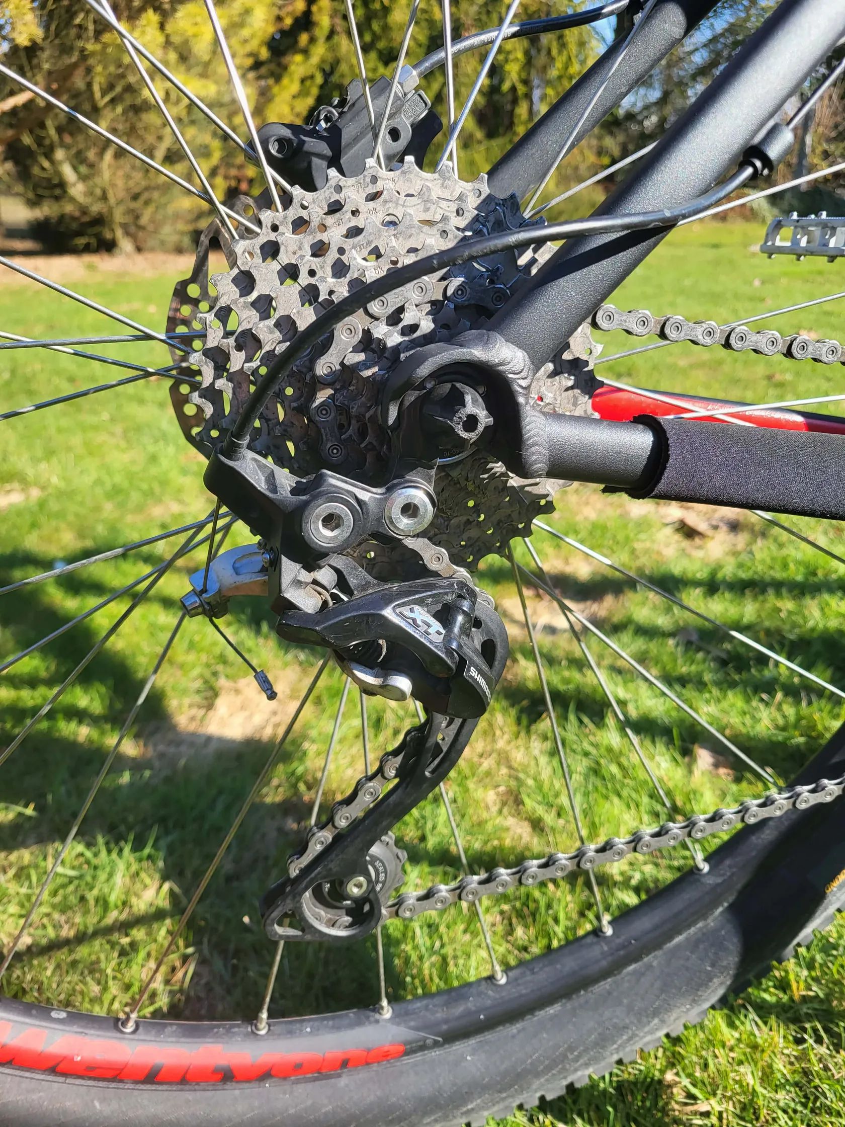 Přehazovačka Shimano Deore XT (3×10) – kvalitní, přesné řazení, lepší než běžná rekreační úroveň.