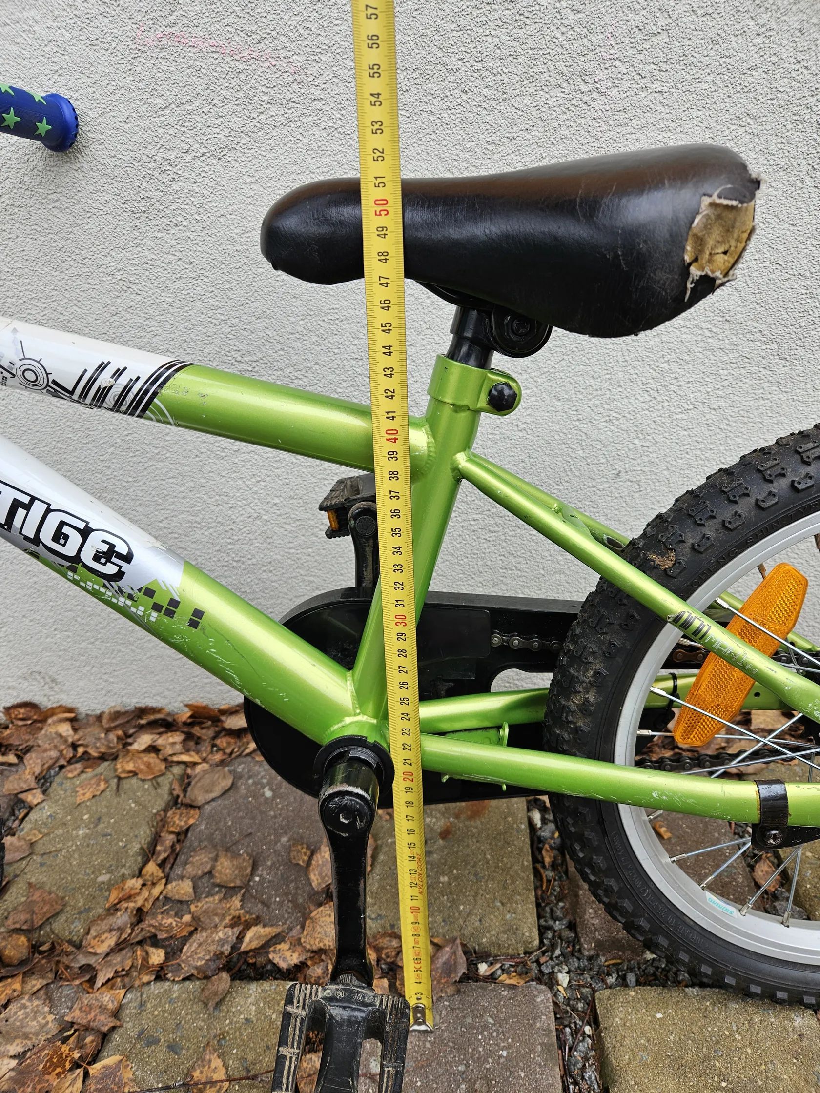 Výška sedla od země cca 50 cm, aktuálně nastaveno na nejnižší pozici, lze dále zvýšit pro růst dítěte