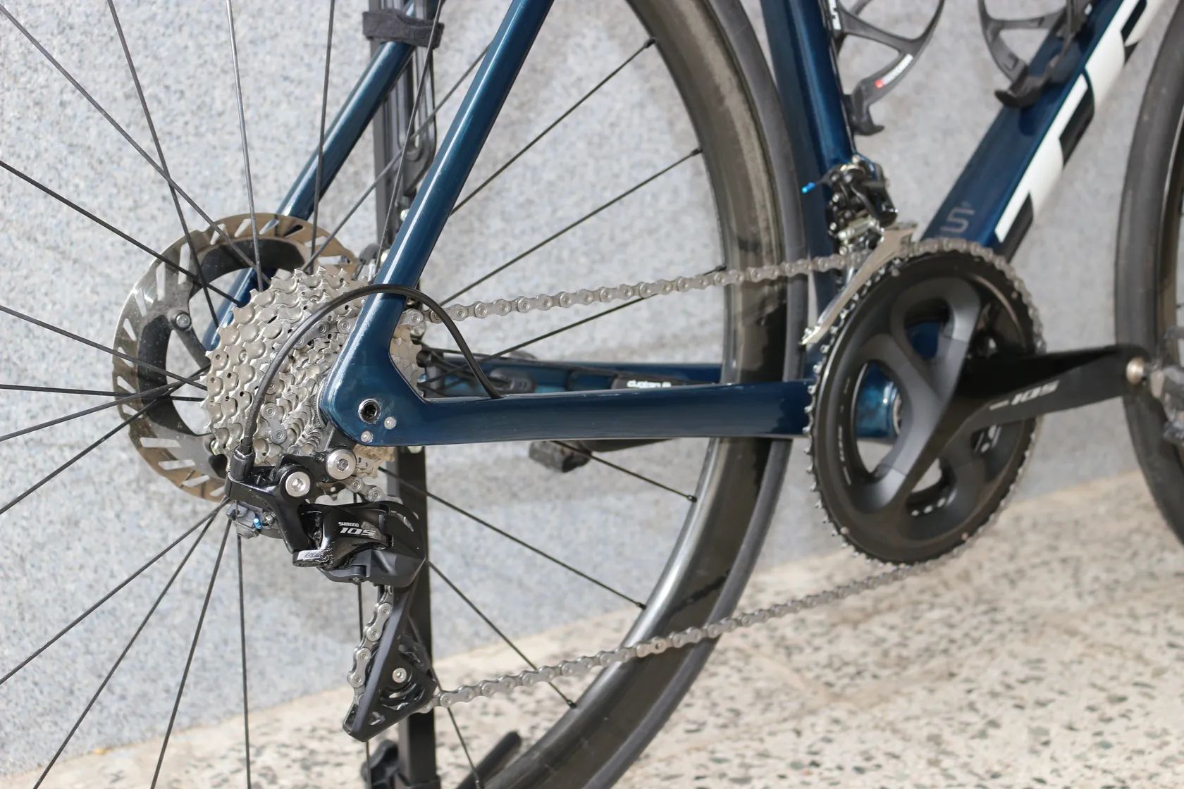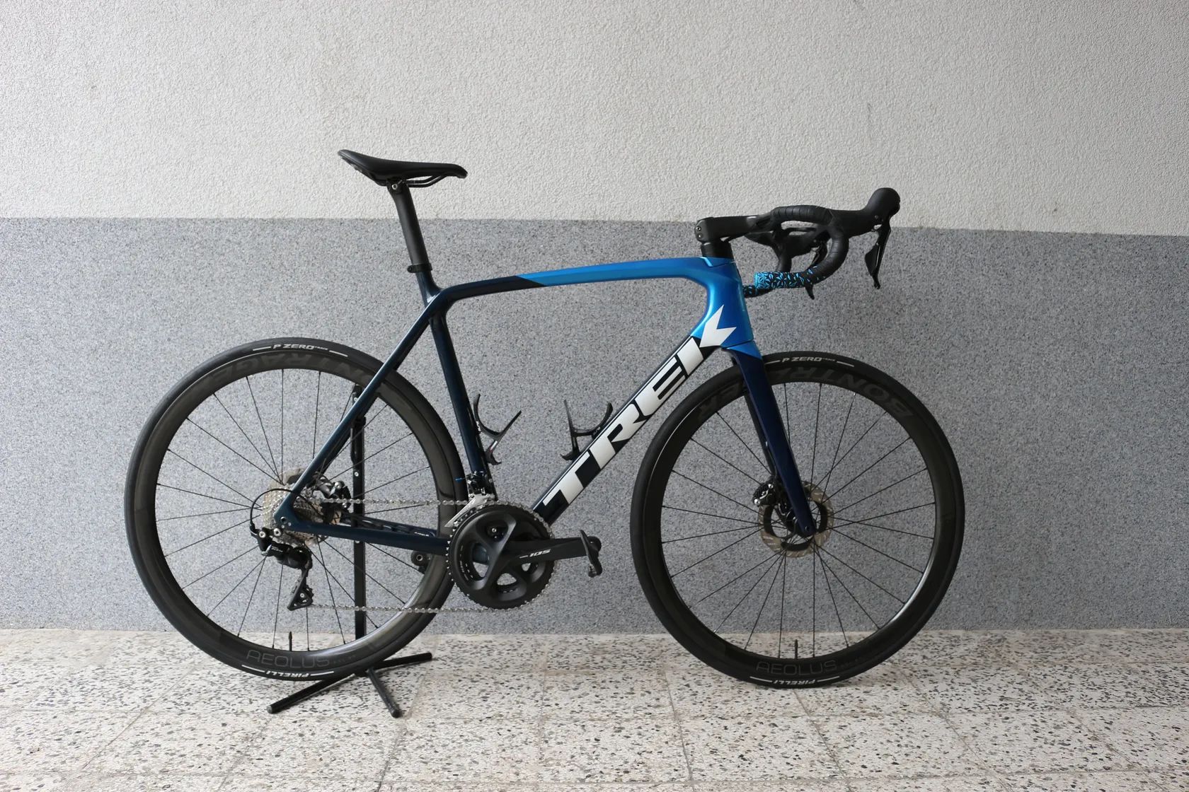 Specifikace: - Rámová sada: Émonda SL (v barvách Carbon Blue Smoke/Metallic Blue) - Zapletená kola: Bontrager Aeolus RSL 37 - Kokpit: Bontrager Aeolus RSL VR-C 420x110 mm - Komponenty: Shimano 105 R7020 (kliky 172,5 mm, převodníky 52x36, kazeta 11-30) - Wattmetr: 4iiii na levé klice (podpora Apple Find My) - Sedlo: Bontrager Aeolus Elite - Sedlovka: Karbonový nástavec, 5 mm offset, delší verze - Pláště: Pirelli P Zero Race 700x28C - Kotouče: Shimano Dura-Ace 160 mm - Hmotnost: (bez pedálů): 8,1 kg