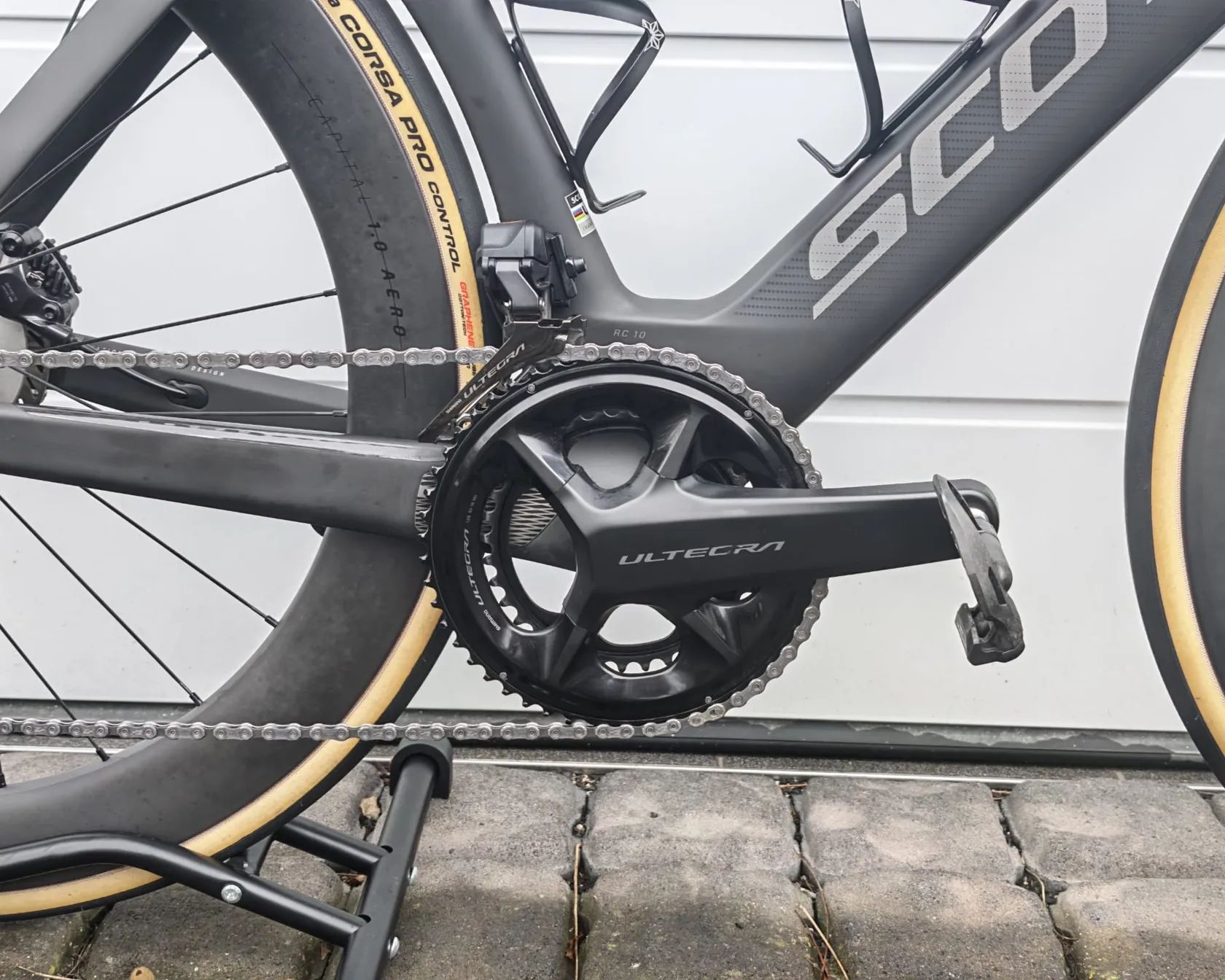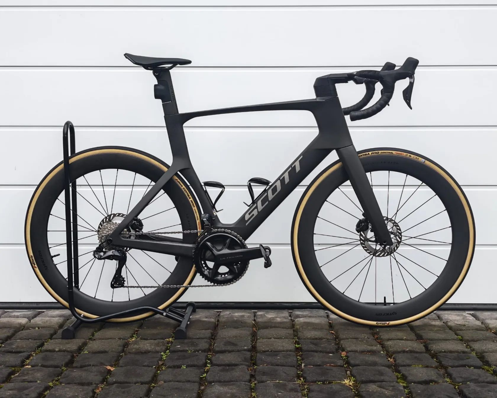 V ceně více příslušenství: přední držák na Garmin, zadní integrovaný držák na radar/světlo, více sad plášťů (Vittoria Corsa Pro Control 30 mm bezdušové + původní Schwalbe Pro One Aero 28 mm)