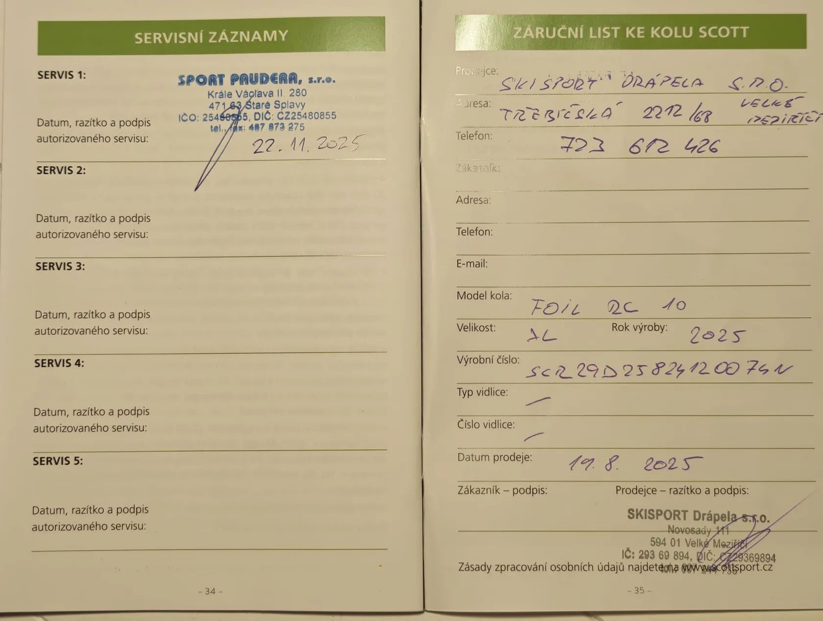 Scott Foil RC 10, velikost rámu 58. Koupeno srpen 2025, najeto 550 km. Kompletní specifikace viz. https://www.endorphinrepublic.cz/p/scott-foil-rc-10-black-eu-new-silnicni-kolo/293186 Kolo je ve stavu nového kola, namáhané části rámu opatřené ochrannou folií. Cena je včetně pedálů Shimano Ultegra, GPS cyklopočítače Magene C606, zadního radaru Magene L508 předního držáku na cyklopočítač, zadního v sedlovce integrovaného držáku na radar/světlo, košíků na láhve, bezdušových plášťů Vittoria Corsa Pro Control 30 mm, původních pláštů Schwalbe PRO ONE Aero 28 mm.