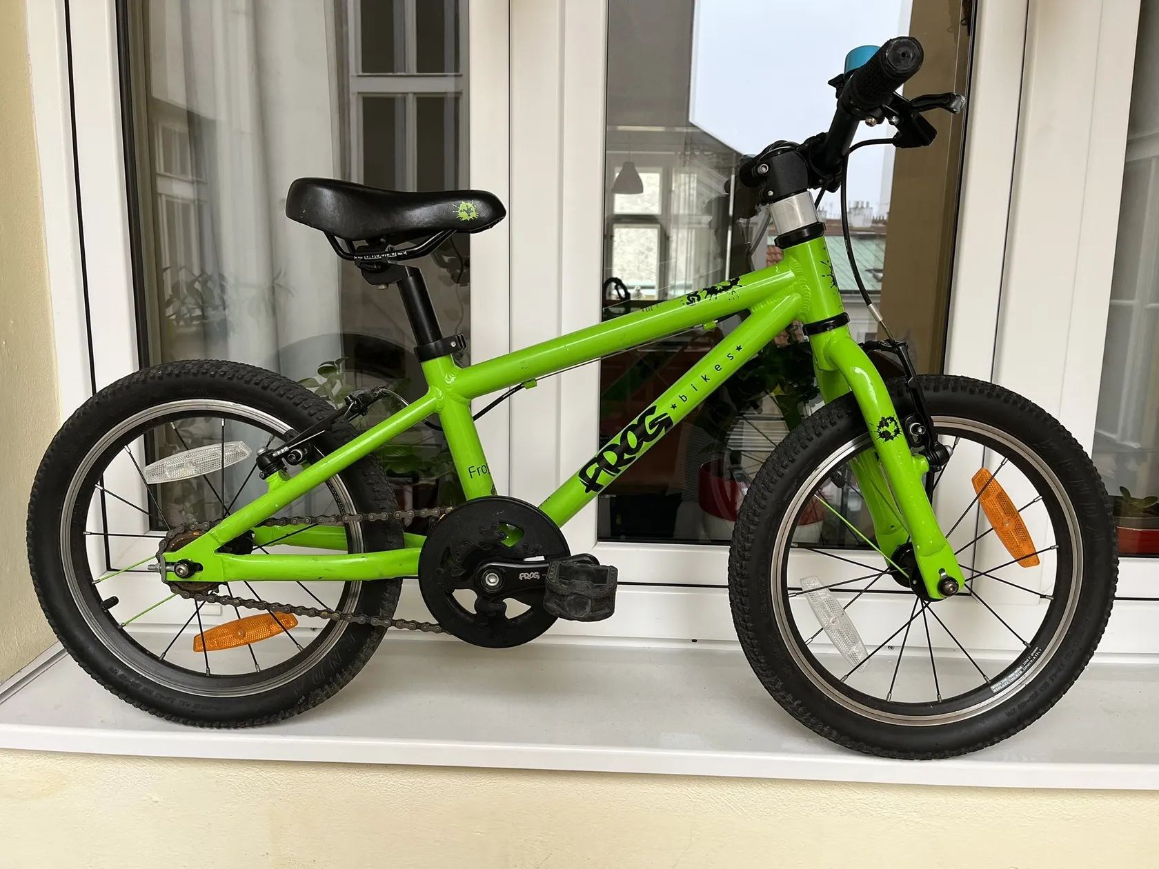 Dětské kolo Frog, 16", používáno jedno léto a né intenzivně. Nové lanka a bovdeny, brzdy Tektro, pláště Kenda, ve výborném stavu, pouze provozní oděrky