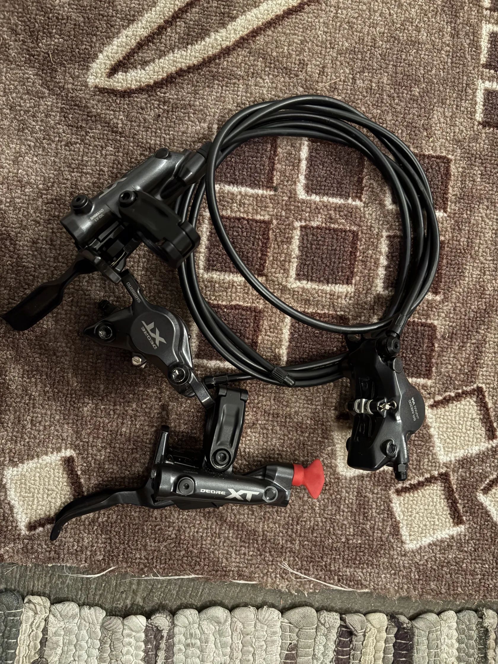 Zánovní minimálně použité brzdy Shimano XT 8200 - nový model 2025/26 s LV olejem - 2 pístek - sundáno z kola XL takže hadice dostatečně dlouhé TOP STAV