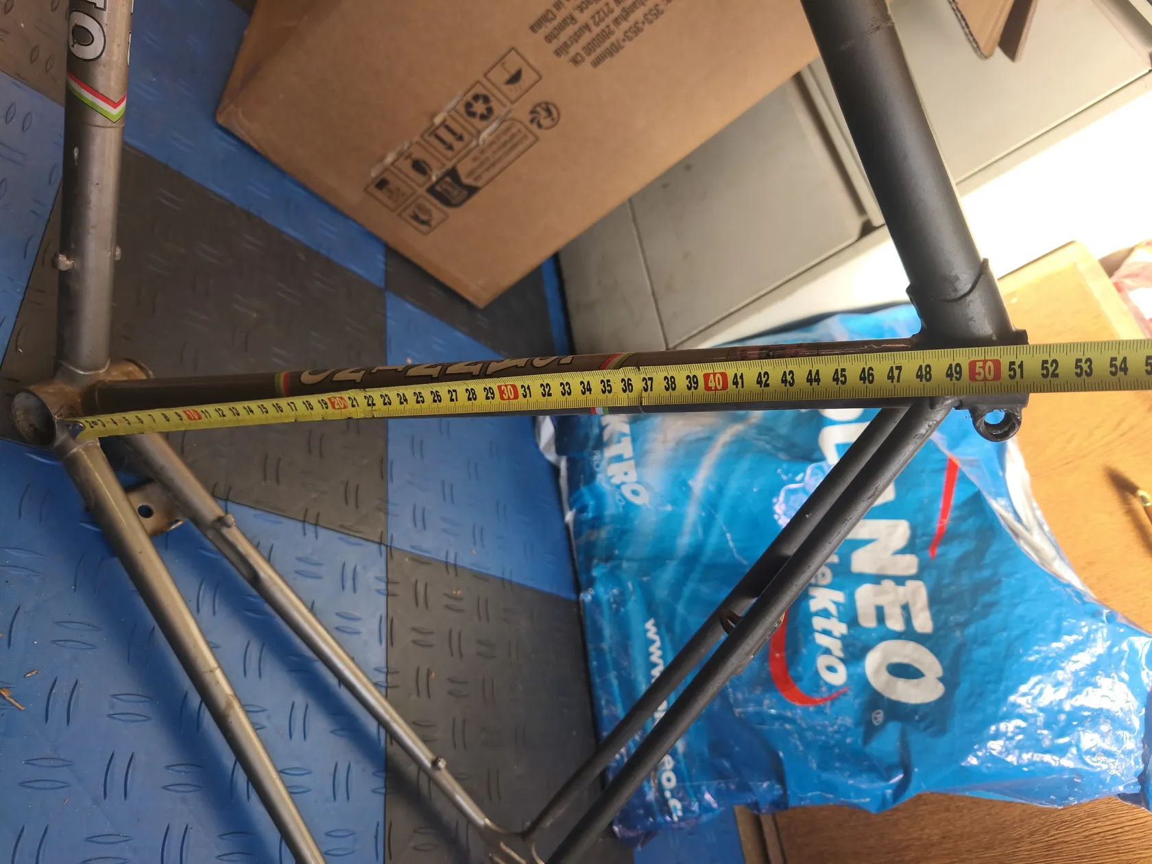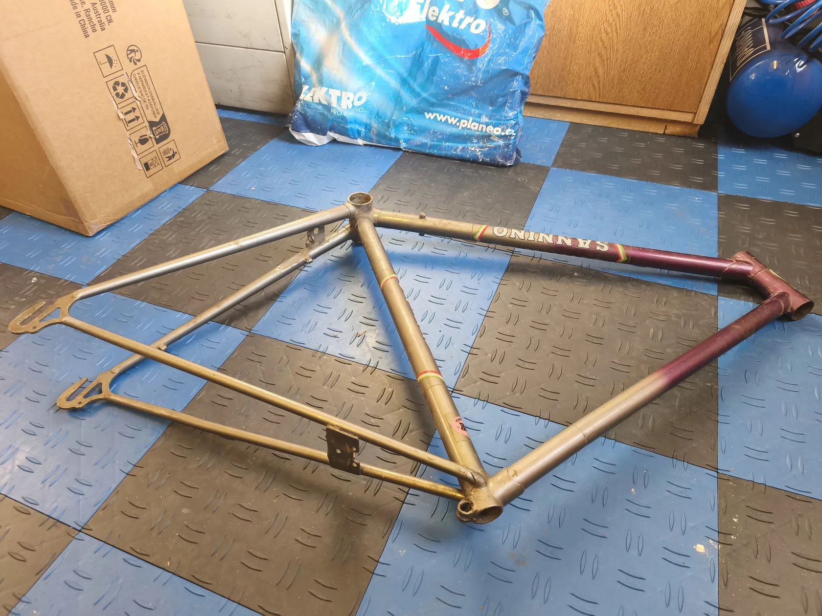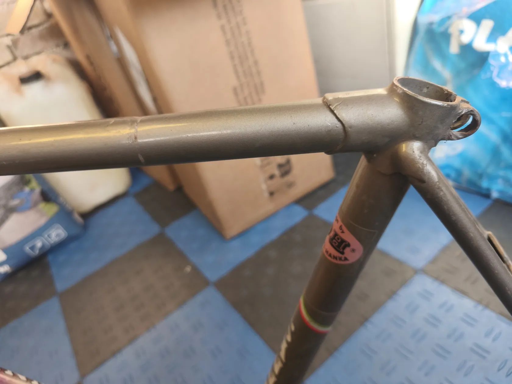 Prodám starý rám, neptejte se me prosim na podrobnosti, nerozumim tomu. Proto jsem se vse snazil nafotit. Horni trubka ma lehke poskozeni, viz toto.