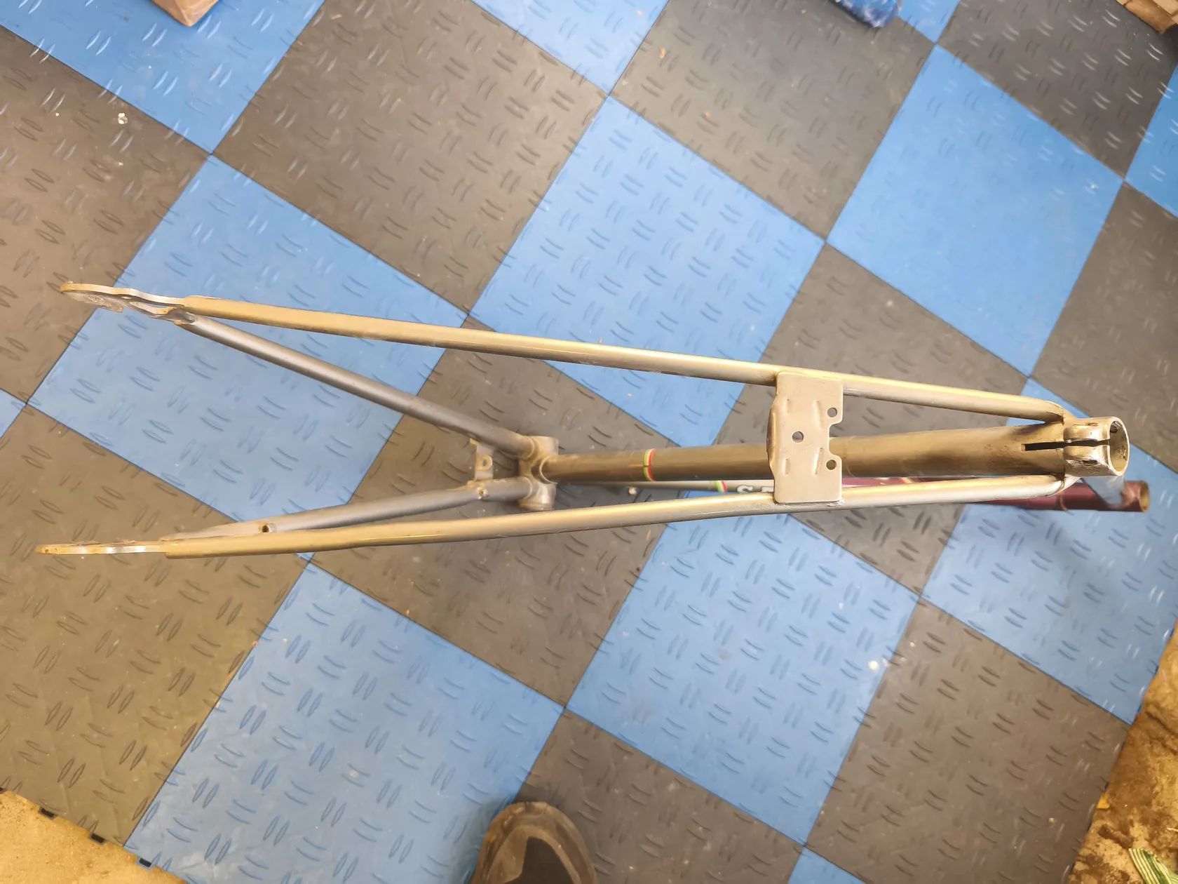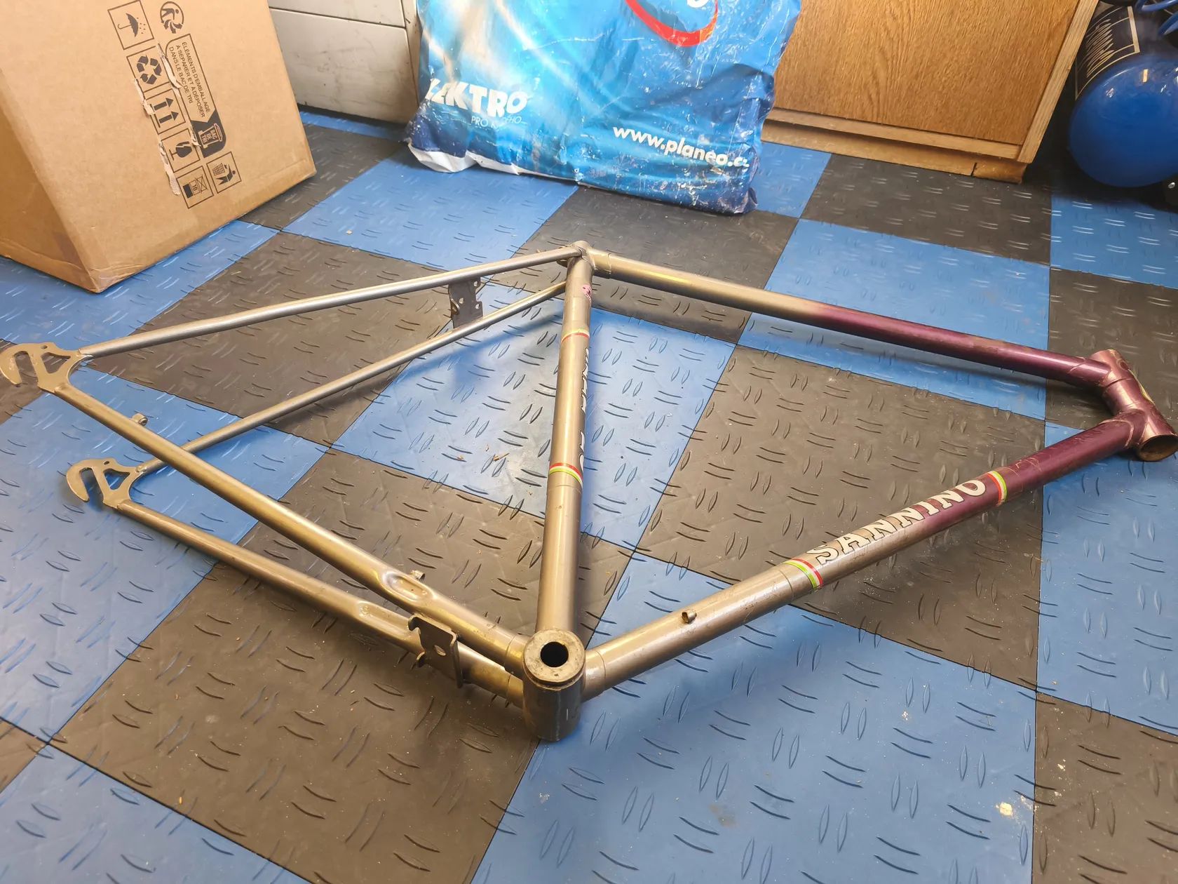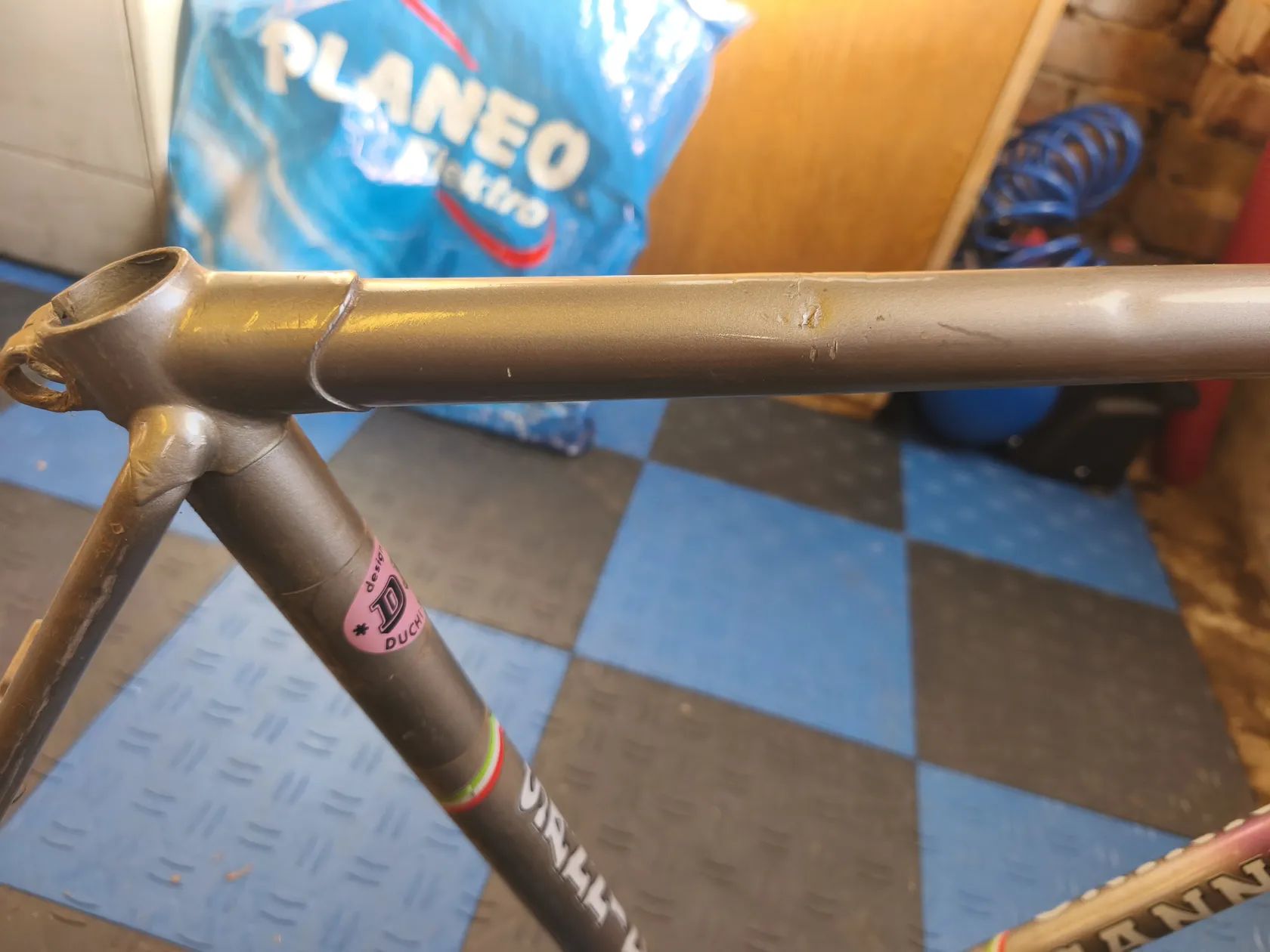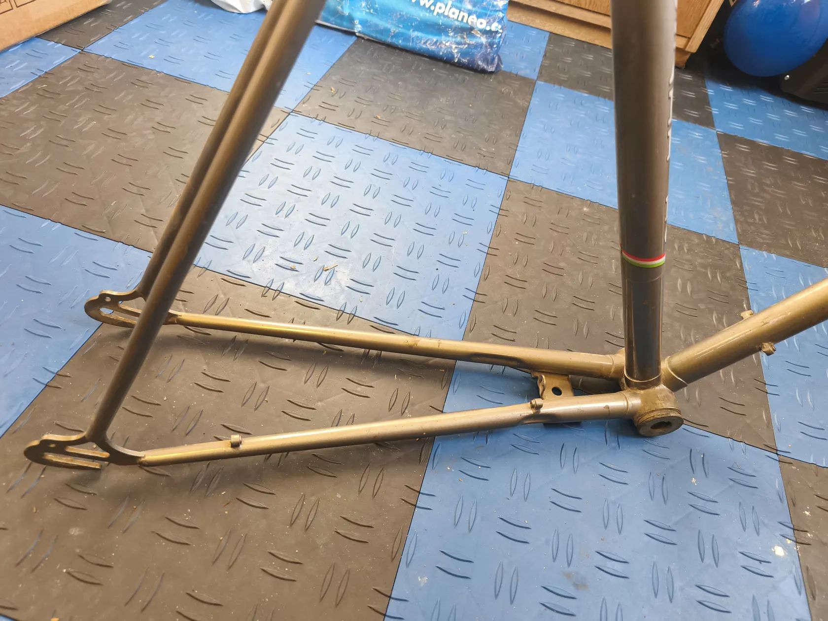 Prodám starý rám, neptejte se me prosim na podrobnosti, nerozumim tomu. Proto jsem se vse snazil nafotit. Horni trubka ma lehke poskozeni, viz toto.
