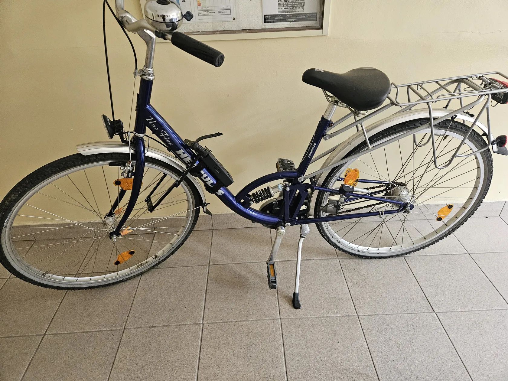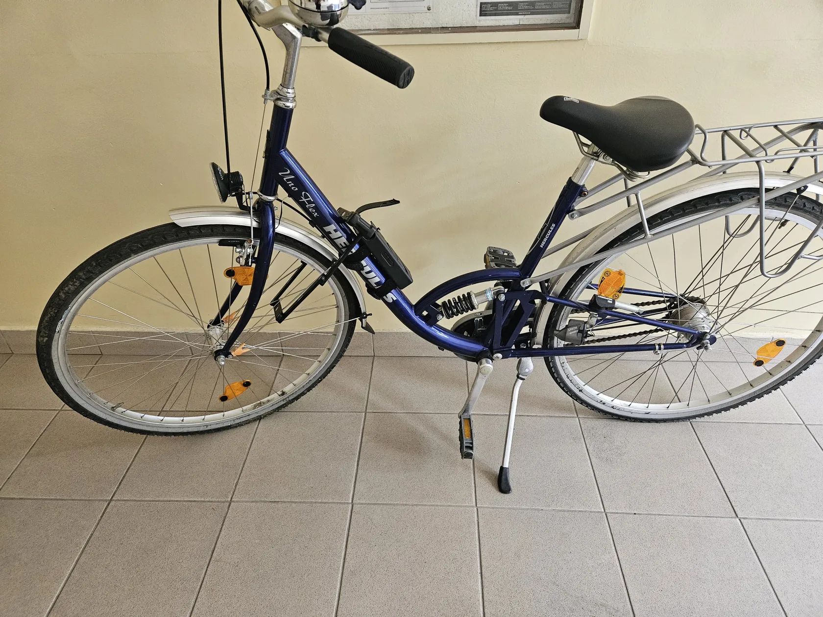 Městské kolo, zakoupené v Německu. Jezdil jsem na něm jen dvakrát. Rám je malý. Má funkční světlo, zvonek a 4 převodové stupně. Na zadní části je místo pro připevnění košíku. Vše funguje, stěhuji se a nemůžu si ho vzít s sebou.