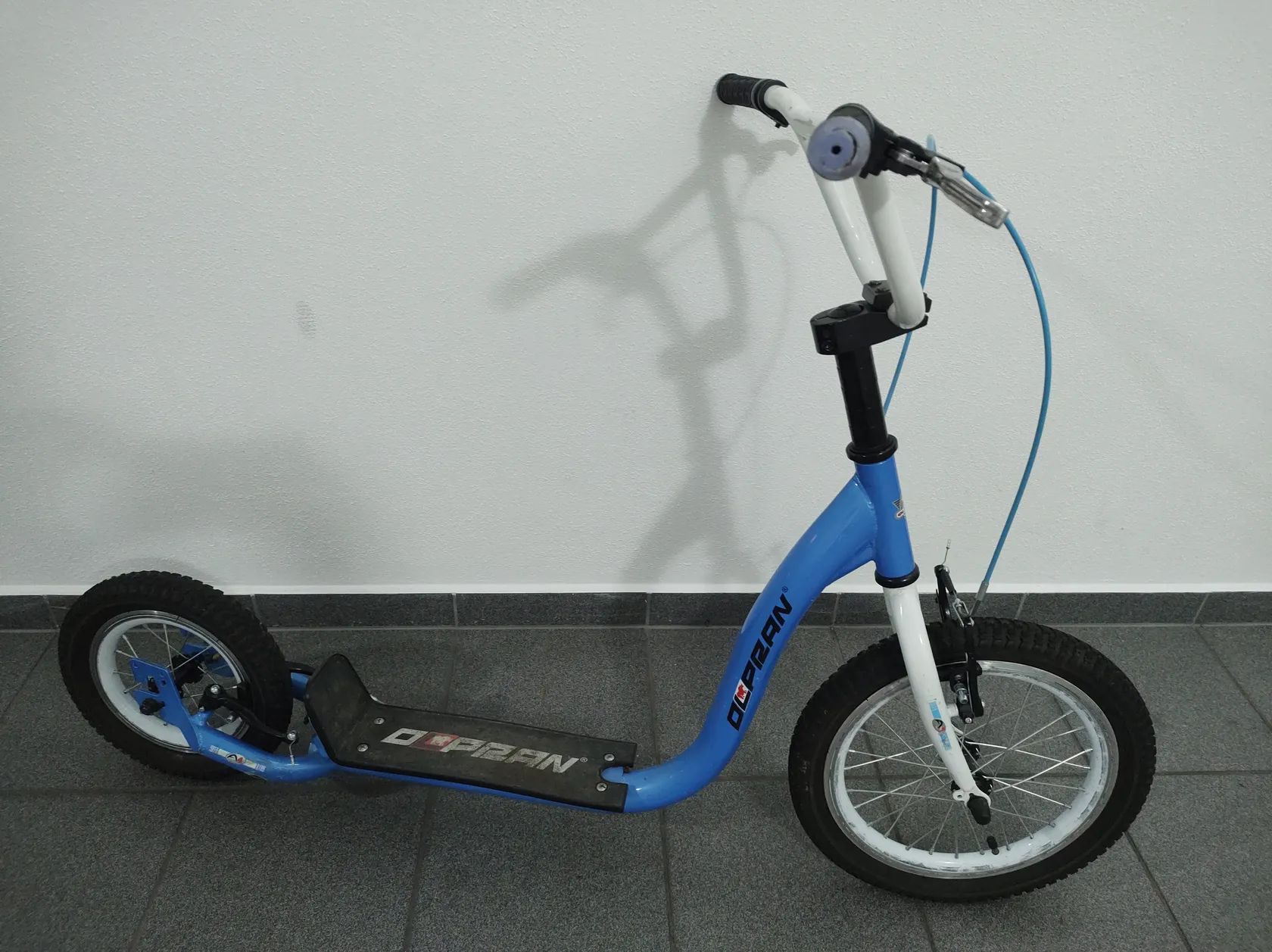 Prodáme dvě dětmi již nevyužité koloběžky Olpran, nafukovací kolečka 16" / 12", nosnost 100 kg. Cena 800 Kč za kus nebo 1500 Kč za obě. Osobní předání.