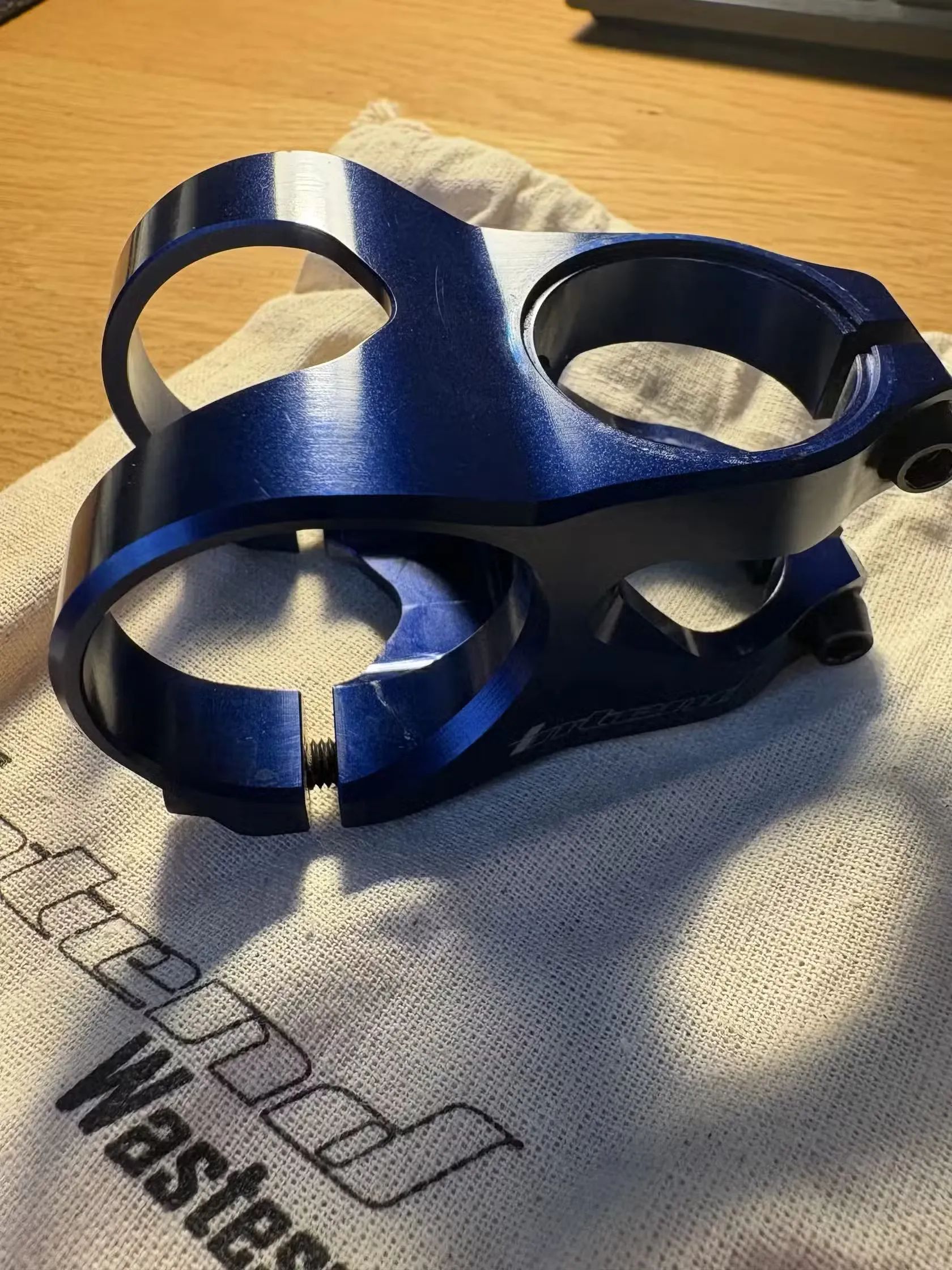 Délka 35mm na řidítka s průměrem 35 mm. Top hmotnost 82g. Tmavě modrá barva. Na čele nepatrné povrchové škrábance. Zevnitř v místě uchycení řidítek a kolem víčka hl. složení trochu ošoupaný elox. Po montáži není vidět