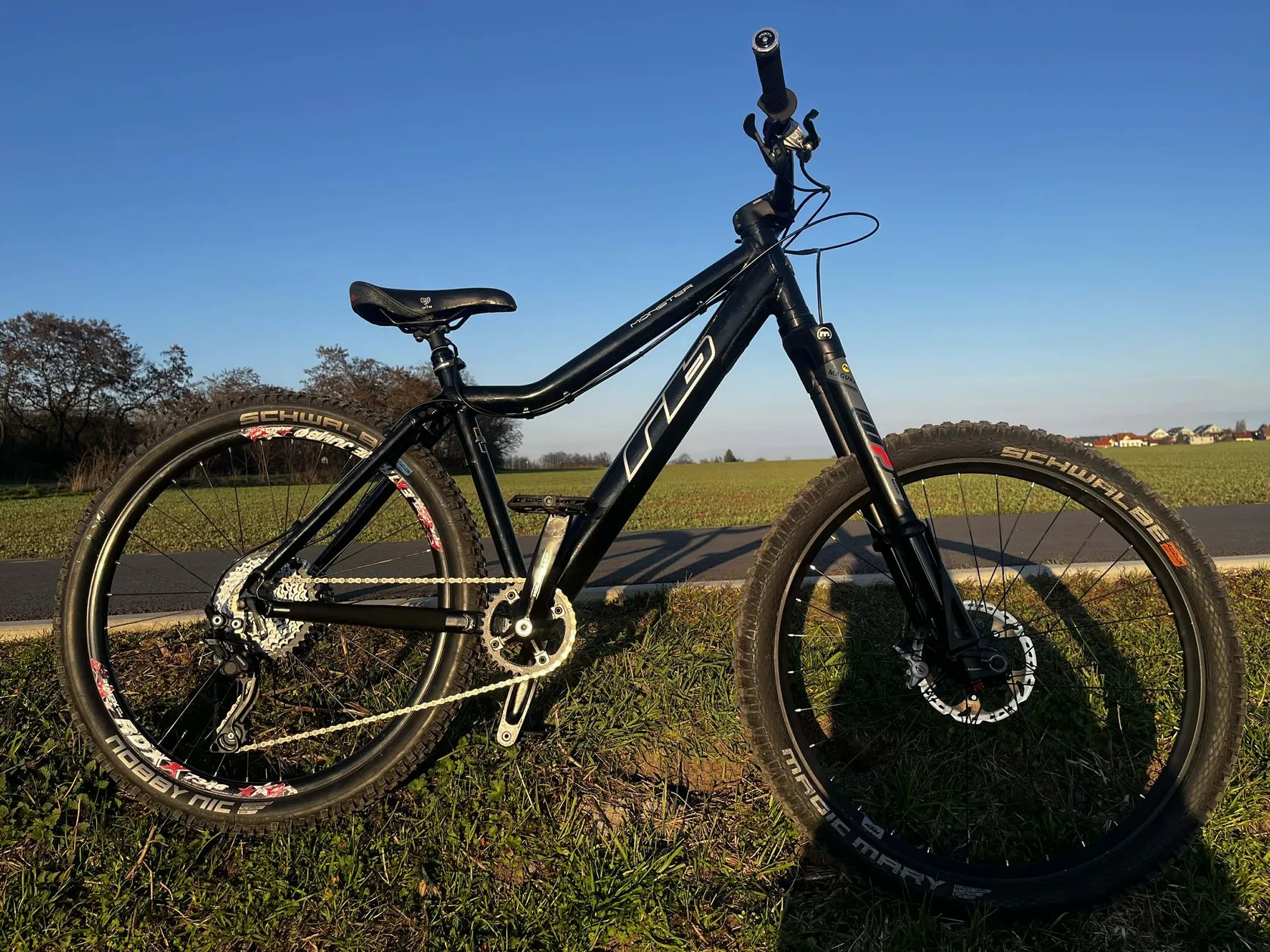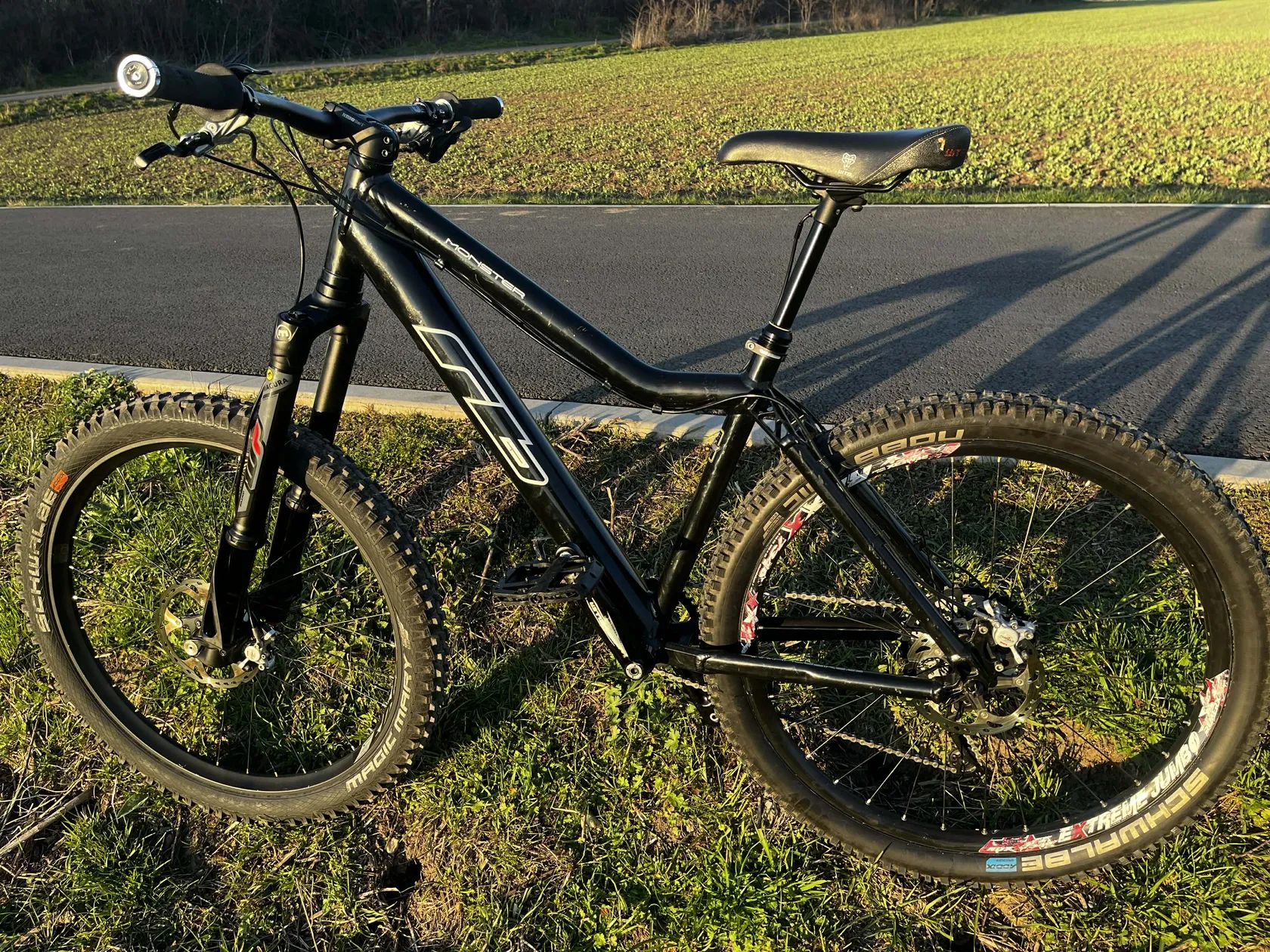 Kolo je v pěkném stavu, po servisu, bez vůlí, kola rovná, apod. Vidlice je hezky citlivá, ale má celkem rychlý odskok, takže není ideální na skoky, protože při odrazech “kope”