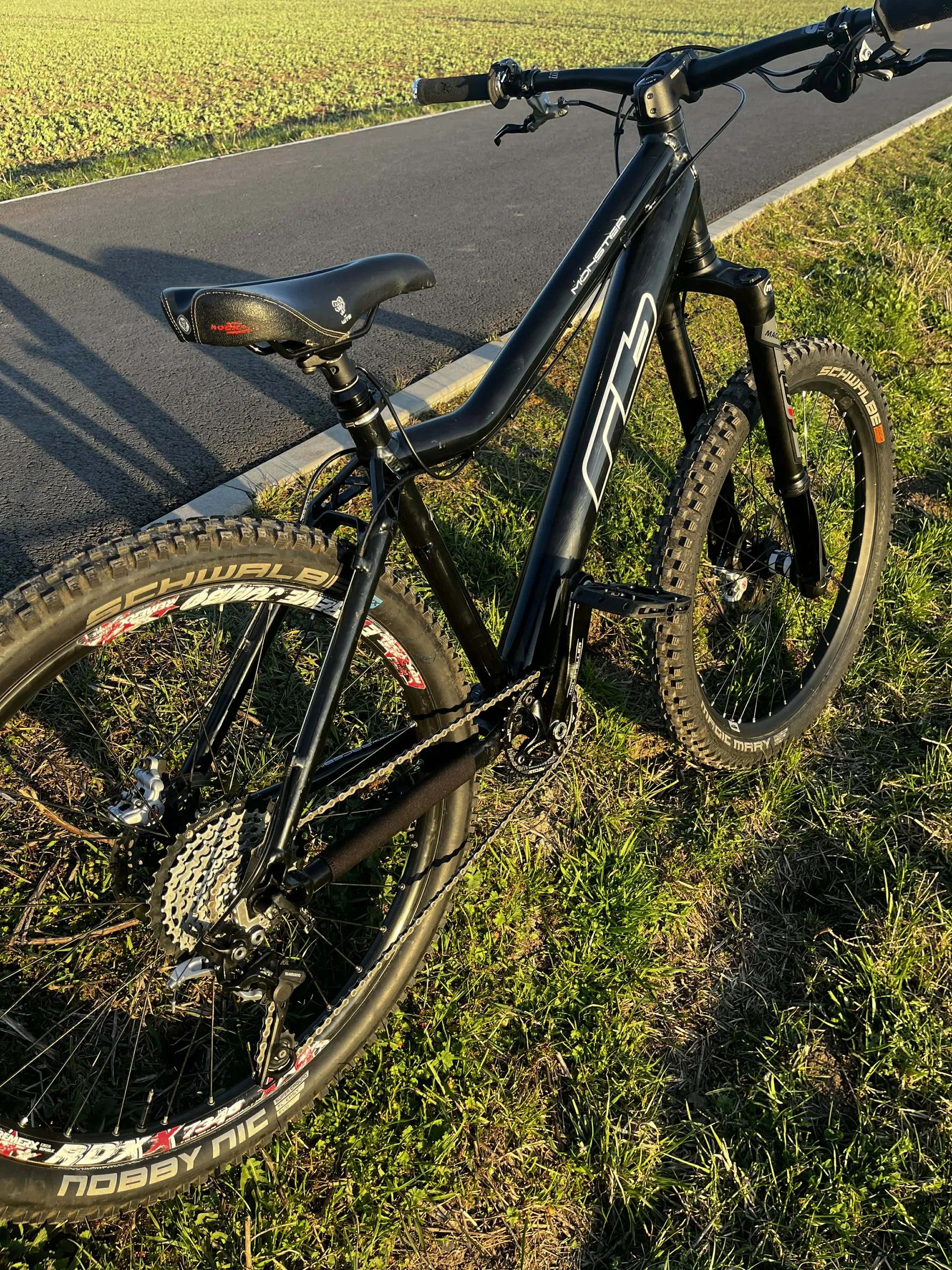 Kolo postavené na ikonickém rámu české výroby RB Monster HT ve velikosti M (vůči současným velikostem odpovídá spíše S)