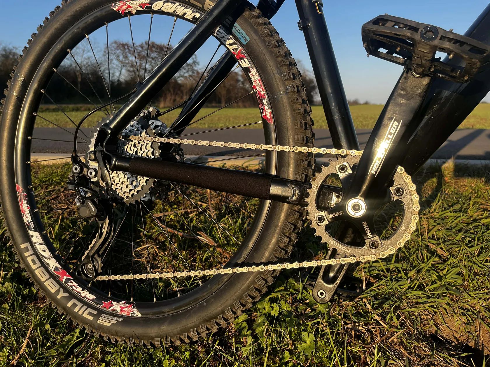 Kliky Truvativ Holzfrller, pedály E-13, přehazovačka Shimano XT, nová kazeta 11-42, nový řetěz i převodník