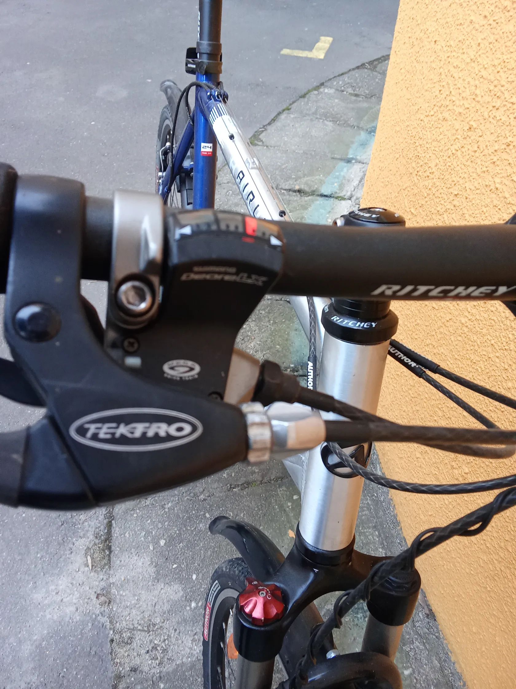 lehké Horské/trekové kolo. vybaveni shimano Lx. uzamykatelna odpružená vidlice. rám vel. 24 na postavu nad 190 cm vse funkční. kosmeticke oderky na sedle.