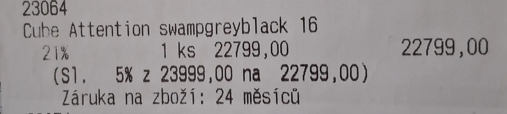 Prodám horské kolo Cube Attention, velikost rámu S (16"), kola 27,5". Kupované nové v Cube Store Karlovy Vary (7/2023). Kolo je ve velmi pěkném stavu, minimálně jeté (cca 250 km), bez poškození, vše plně funkční. Výbava: vzduchová vidlice RockShox řazení Shimano Deore kotoučové brzdy pláště Schwalbe Smart Sam Doklad o koupi + záruční list k dispozici. Bez nutnosti investic, připravené na sezónu. Cena: 15 500 Kč (dohoda možná) Lokalita: Ostrov, okres Karlovy Vary