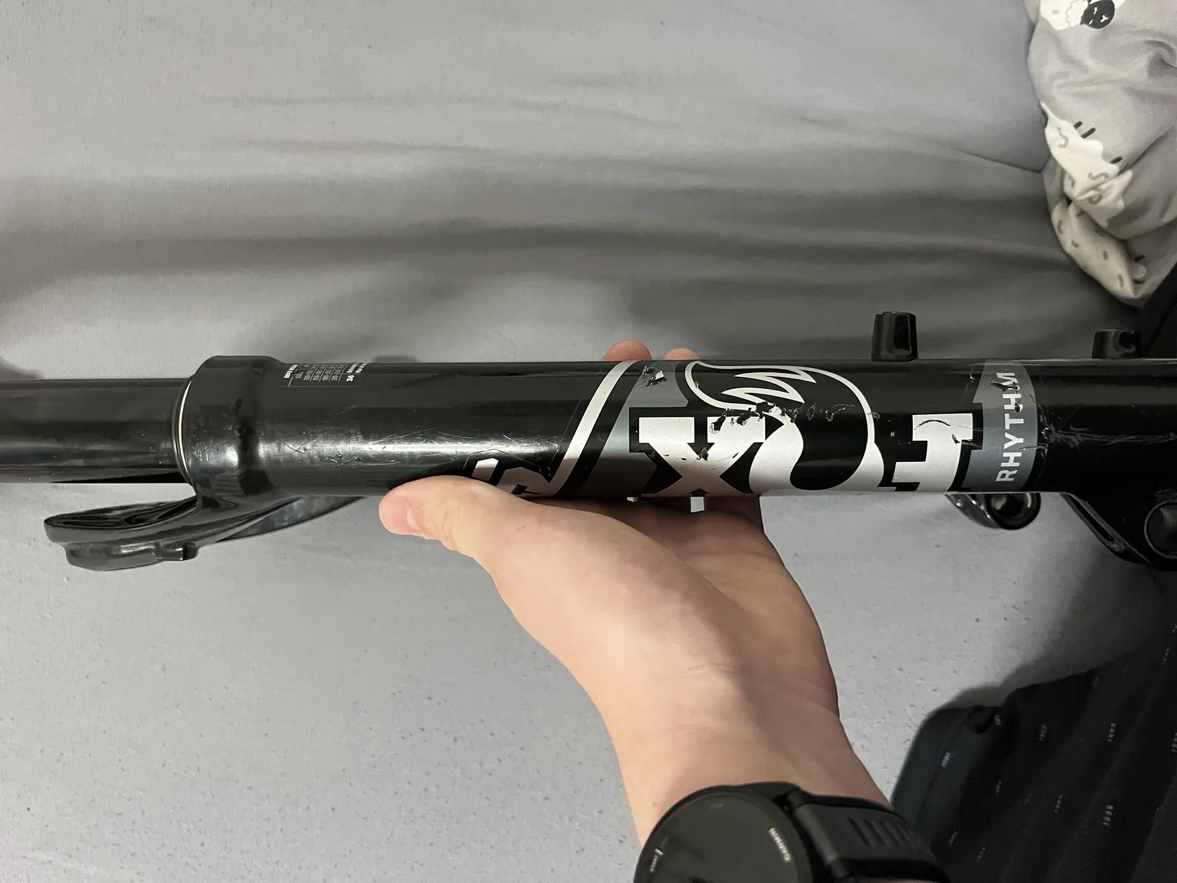 Prodám vidlici fox rhythm 36 na díly, spodní nohy mají strhlý horní závit na uchycení brzdového třmenu. Zdvih vidlice je 160mm sloupek má délku 19cm rozměr 110x15 na kola 27,5 při rychlém jednání sleva. Zbytek části jako patrona jsou vpořadku a kluznice nejsou poškozeny.