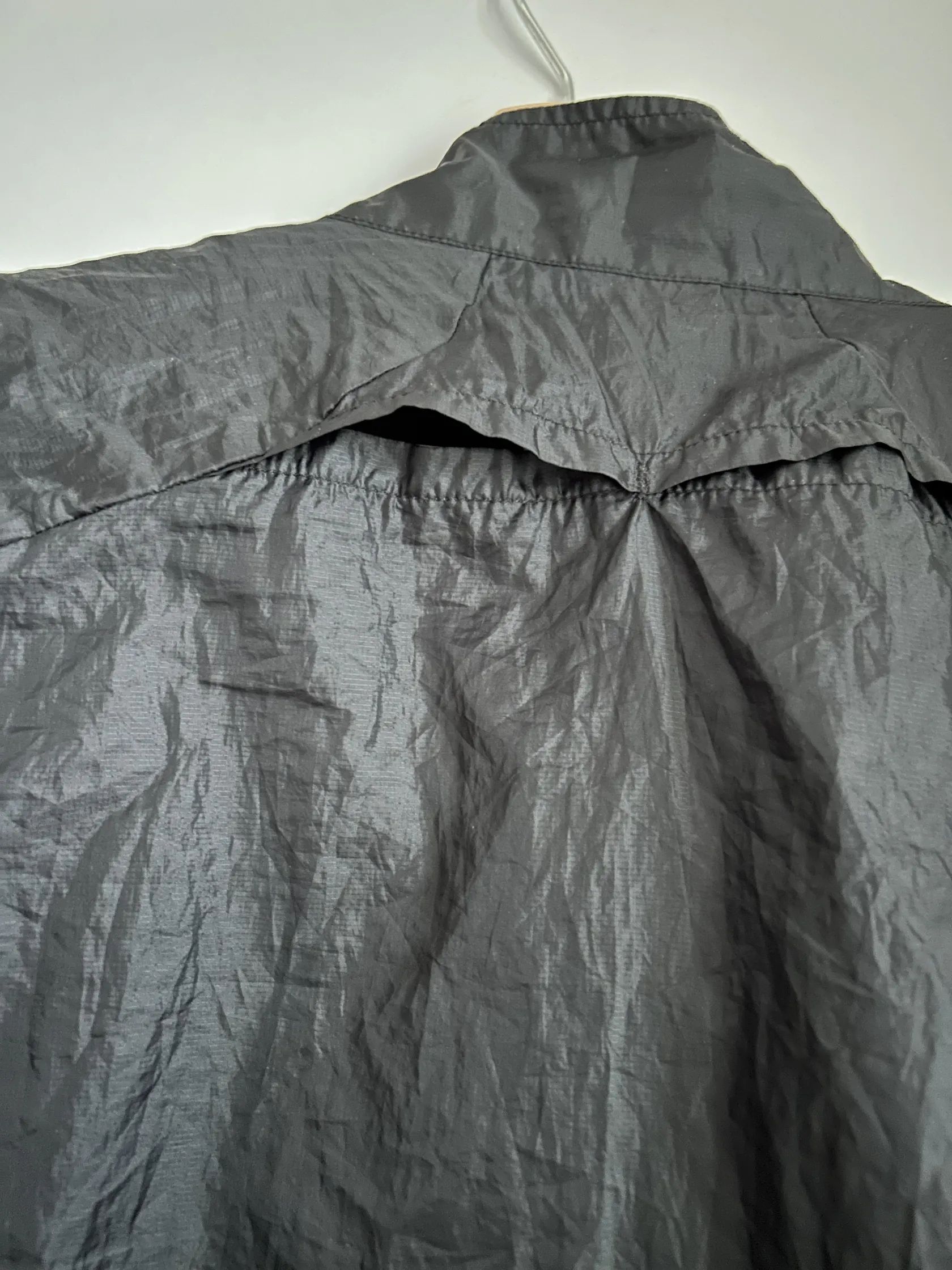 Cerna sbalitelna mala kapsicka na zadech po stranach sitovane casti a za krkem vytraci otvory. Veleikost L. Hezka.