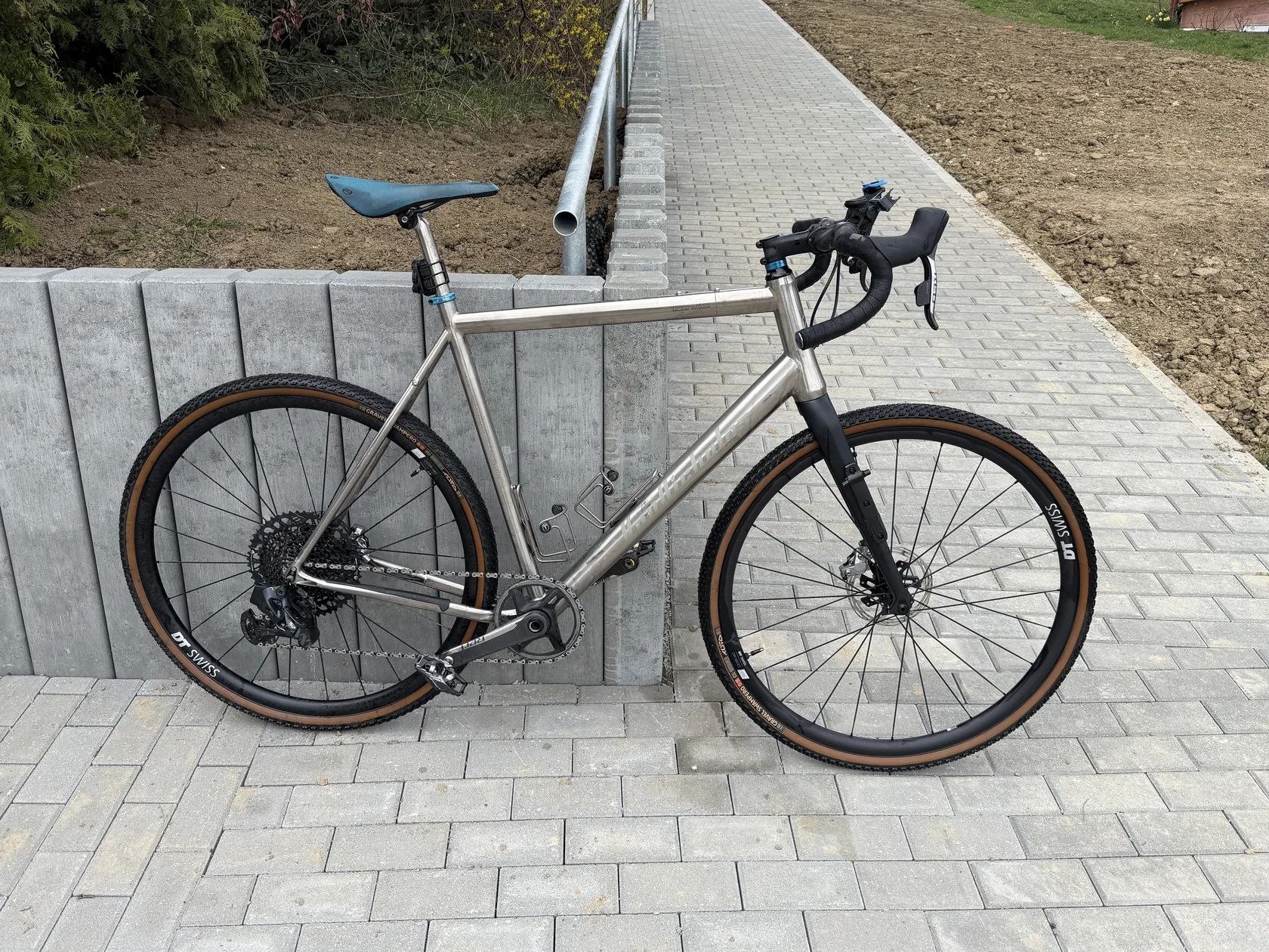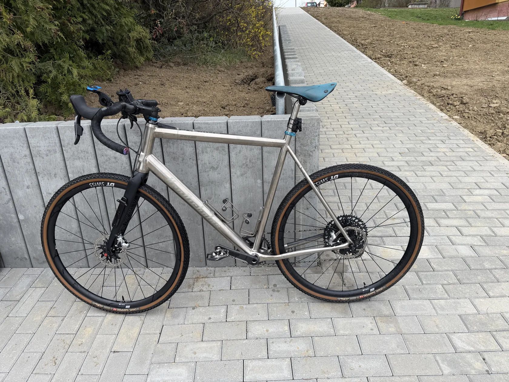 Při rychlém a slušném jednání přidám ještě jednu sadu kol DT SWISS GR 1600 obuté na TUFO Thundero, rámovou brašnu (šitá na míru rámu), přední brašnu a brašny na vidlici TAILFIN.