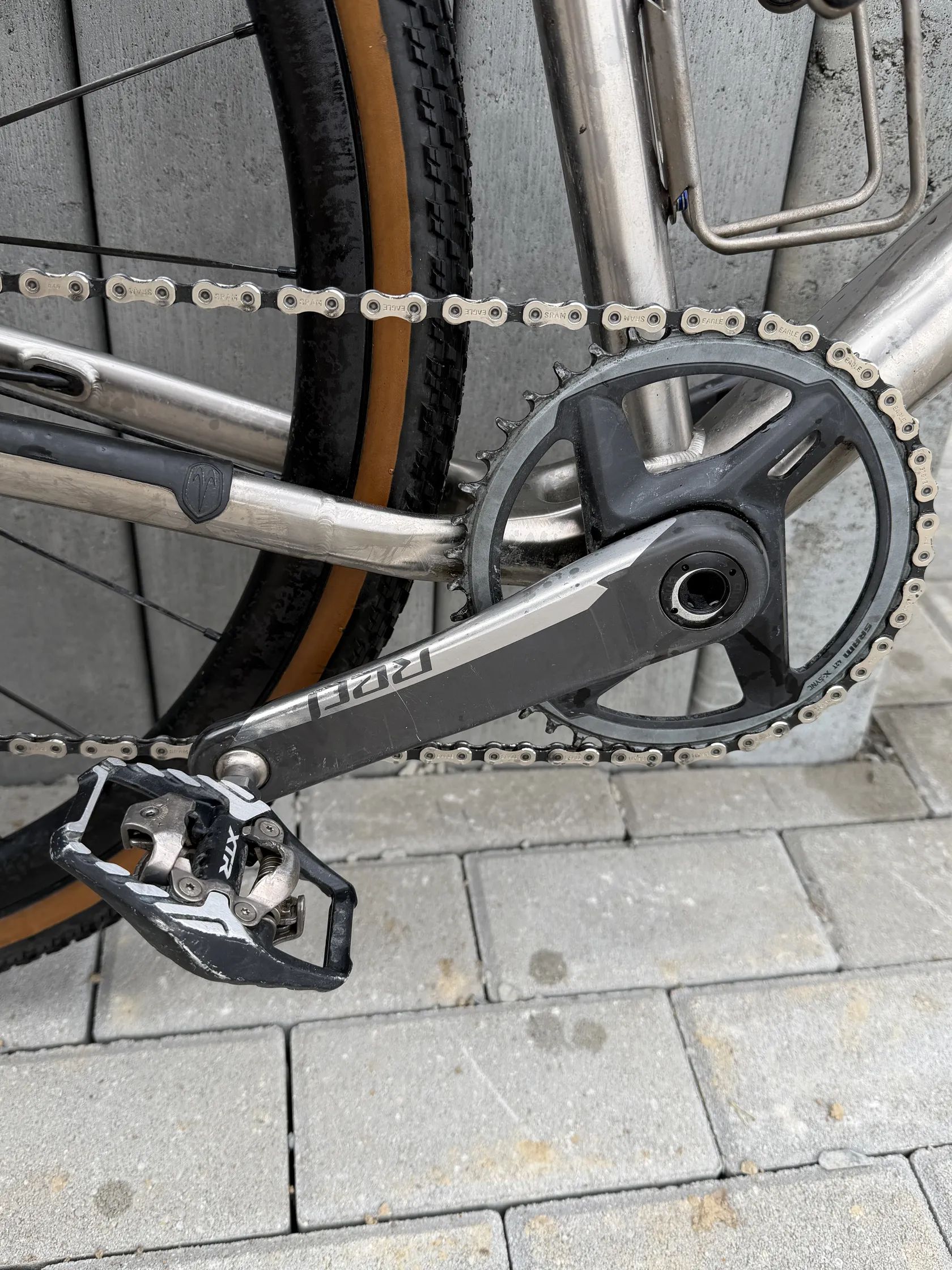 Nabízím k prodeji Titanový gravel Van Nicholas. Velikost 60. Osazený kombinací SRAM RED Kliky + Páky a SRAM XX1 řazení a kazeta (10 - 52). Brzdy SRAM RED. Kola DT SWISS GR 1600 (hliníkové). Obuté bezdušáky TUFO Swampero 40mm. Titanové doplňky - sedlovka, košíky. Představec a řídítka Deda elementi - Gera a Mud cross.