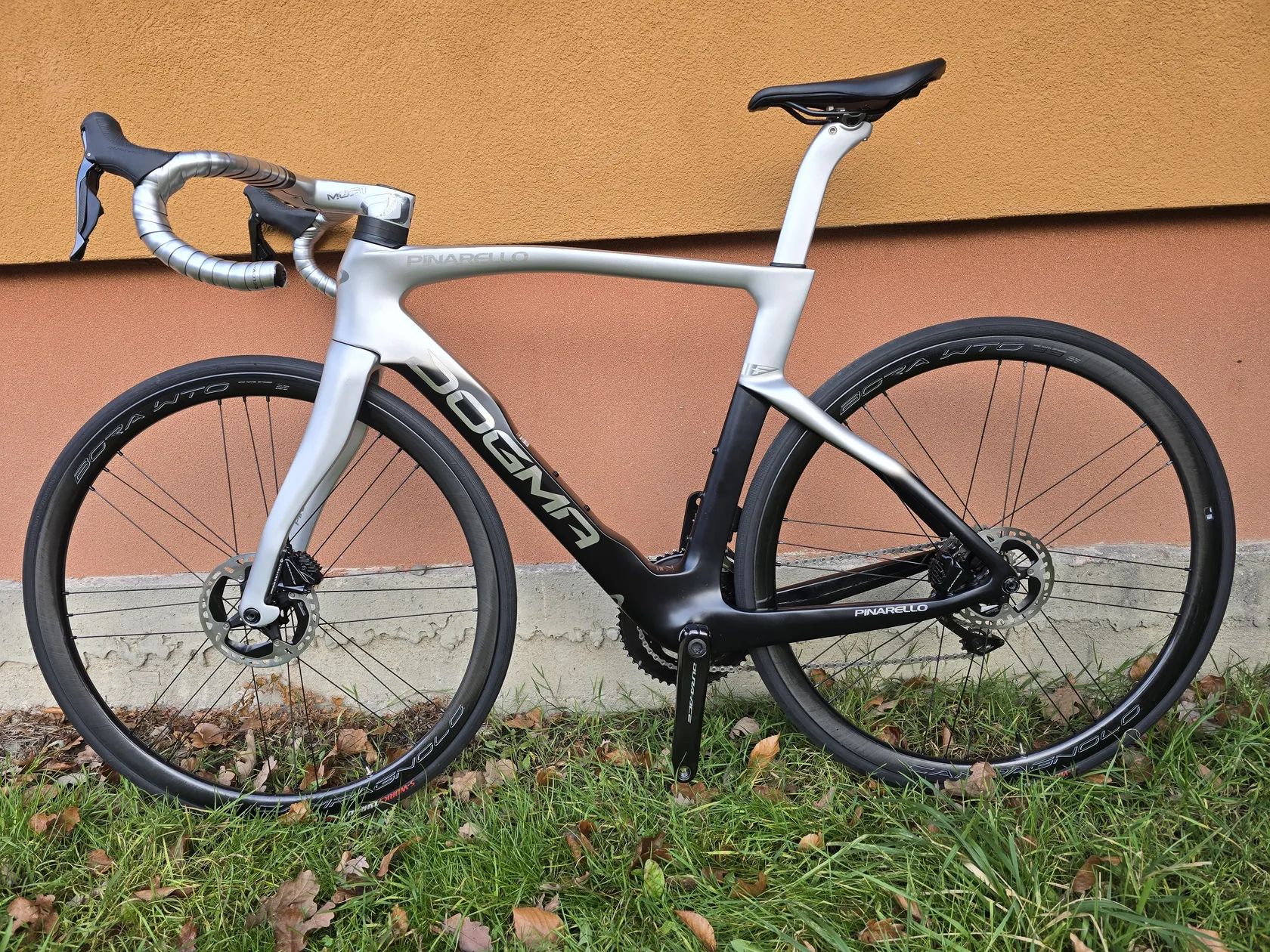 Zanovní originál Pinarello Dogma F professional za super cenu. V nádherné plutonium barvě. velikost na 174- -183 cm. Možnost jen rámové sady. Pinarello dogma je závodní model, který nabízí skvělou ovladatelnost, komfort i aerodynamiku. Model F je skvělý jak ve stoupáních, sjezdech i sprintech. Cokoliv si na vás trať přichystá, tak na "eFku" pojedete vždy na tom správném kole! Rám je ze špičkového karbonu Torayca T1100 1K. Dogma F je k dispozici ve 3 základních odstínech + jsou tu individualitu nabízející služby, které Vám zajistí barevné provedení kompletně dle Vašeho přání a to i včetně riditek .Pinarello Carbon Torayca T1100 1K Dream Carbon rám s technologií nanoalloy .V porovnání s F12: Hmotnost nižší o 265 gramů u kompletního rámového setu pro kotoučové brzdy. O 12 % tužší rám v oblasti středového složení. O 3,2 % lepší aerodynamika u rámu pro ráfkové brzdy. O 4,8 % lepší aerodynamika u rámu pro kotoučové brzdy . 6,8 kg je váha celého kola na ShimanoDura-Ace). TiCR "Internal cable routing" je kompletní interní vedení kabeláže od řídítek, přes představec, po rám, až ke komponentům. Zlepšuje tak aerodinamiku, chrání kabely a podtrhuje čistý vzhled kola jako celku. CARBON T1100 1K Je vysoce pevné uhlíkové vlákno s patentovanou technologií Nanoalloy pro extrémní výkony. Používá se při výrobě závodních automobilů a ve špičkovém leteckém průmyslu. A pro Dogma F. FLATBACK PROFILE Je speciálně navržený profil rámové trubky, který zlepšuje aerodinamiku kola a zmenšuje odpor proti bočnímu větru. ONDA FORK Speciálně vyvinutá přední vidlice Onda poskytuje výborné manévrovací schopnosti, zlepšuje stabilitu a redukuje podélné a boční rázy. Osazeno Shimano Dura-Ace . Původní cena 340 tis. nyní bez kol 105 tis kola Campagnolo Bora Wto 20tis. platnost do smazání. nejlépe volat.