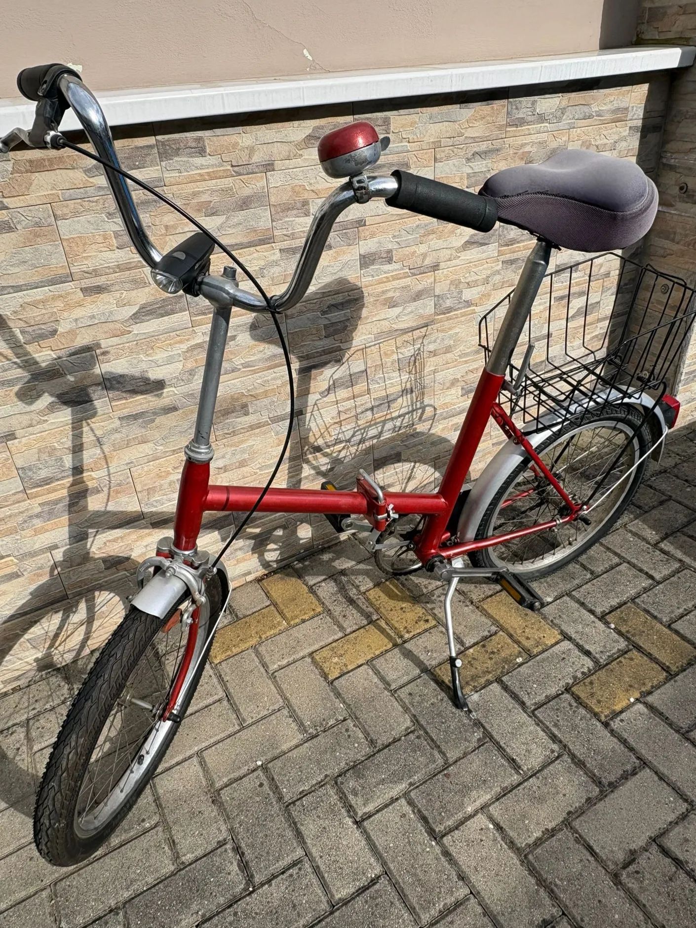 Prodám skládací kolo ESKA, loni renovace včetně laku, s nosičem a košíkem, seřízené, bezvadné