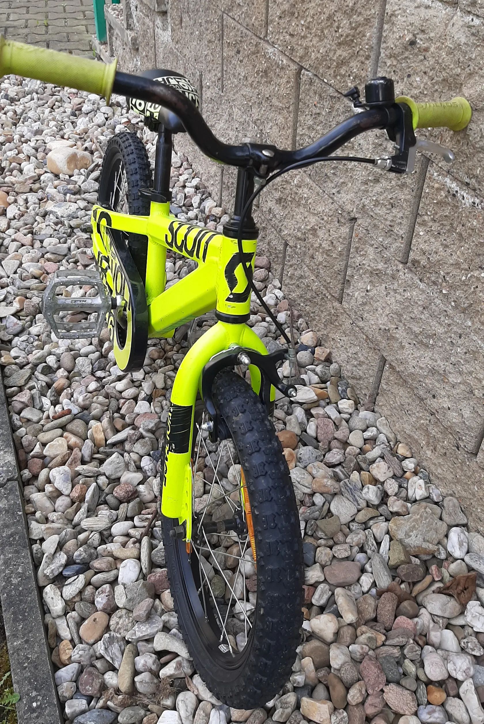 Prodám nezničitelné' dětské kolo Scott Voltage JR 16 v jasně žluté barvě. Rám: Vysoce kvalitní duralový rám Scott Junior 16 s pevnou vidlicí BMX typu. Kola a brzdění: Kolo má 16palcová kola, ráfkové brzdy Tektro a je vhodné jako první kolo pro děti ve věku přibližně 4–6 let.