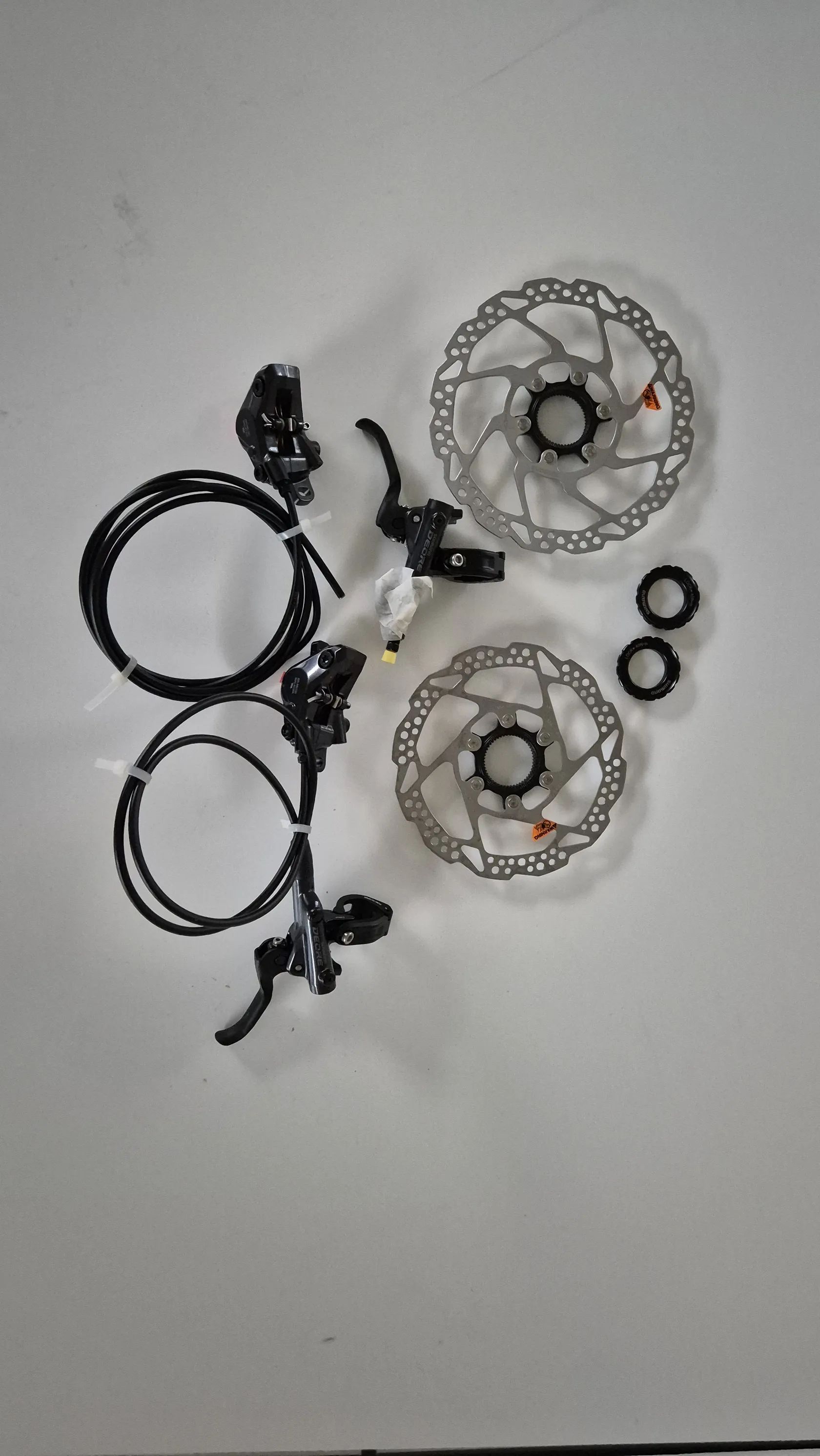 Prodám set nových brzd Shimano Deore BR-M6100 včetně kotoučů Shimano SM-RT54 180/160 na Centerlock. Brzdy a kotouče nebyly nikdy jeté, jsou sundané z nového kola. Osobní převzetí v Jinačovicích nebo odeslání přepravkou.