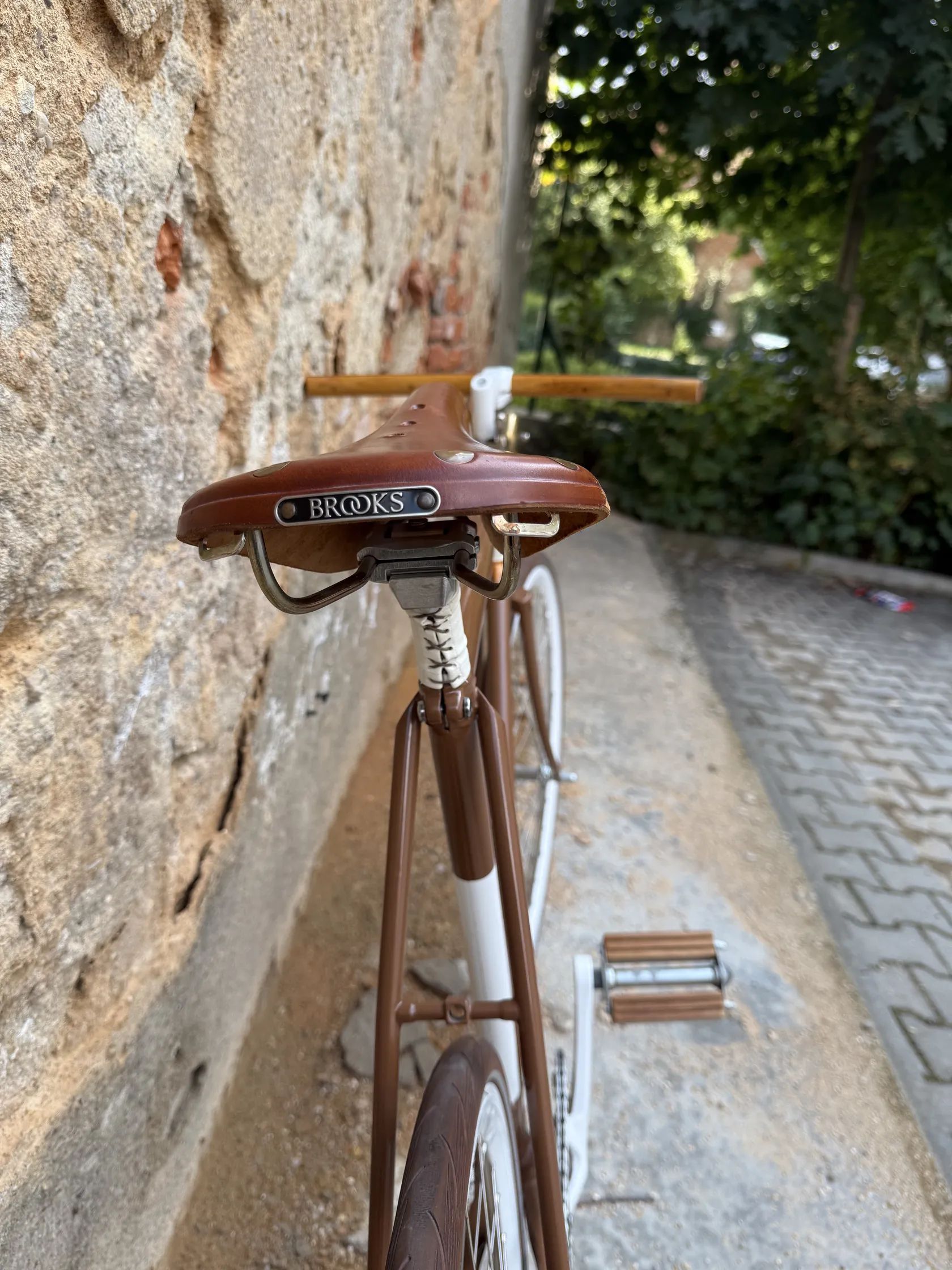 Prodám unikátní retro kolo postavené na původním rámu Favorit. Kolo je kompletně přestavěné do minimalistického designového stylu – jedná se o funkční a plně pojízdné kolo, které ale zároveň slouží jako stylový doplněk a originální kousek, který jen tak někdo nemá. • Původní rám Favorit – nově lakovaný • Zakázková dřevěná řídítka • Kožené sedlo Brooks • Stylové detaily v měděné barvě • Bílé pláště Schwalbe • Jednorychlostní (single speed) – jednoduché, lehké, bezúdržbové • Vhodné do města, na roviny, nebo jen tak pro radost