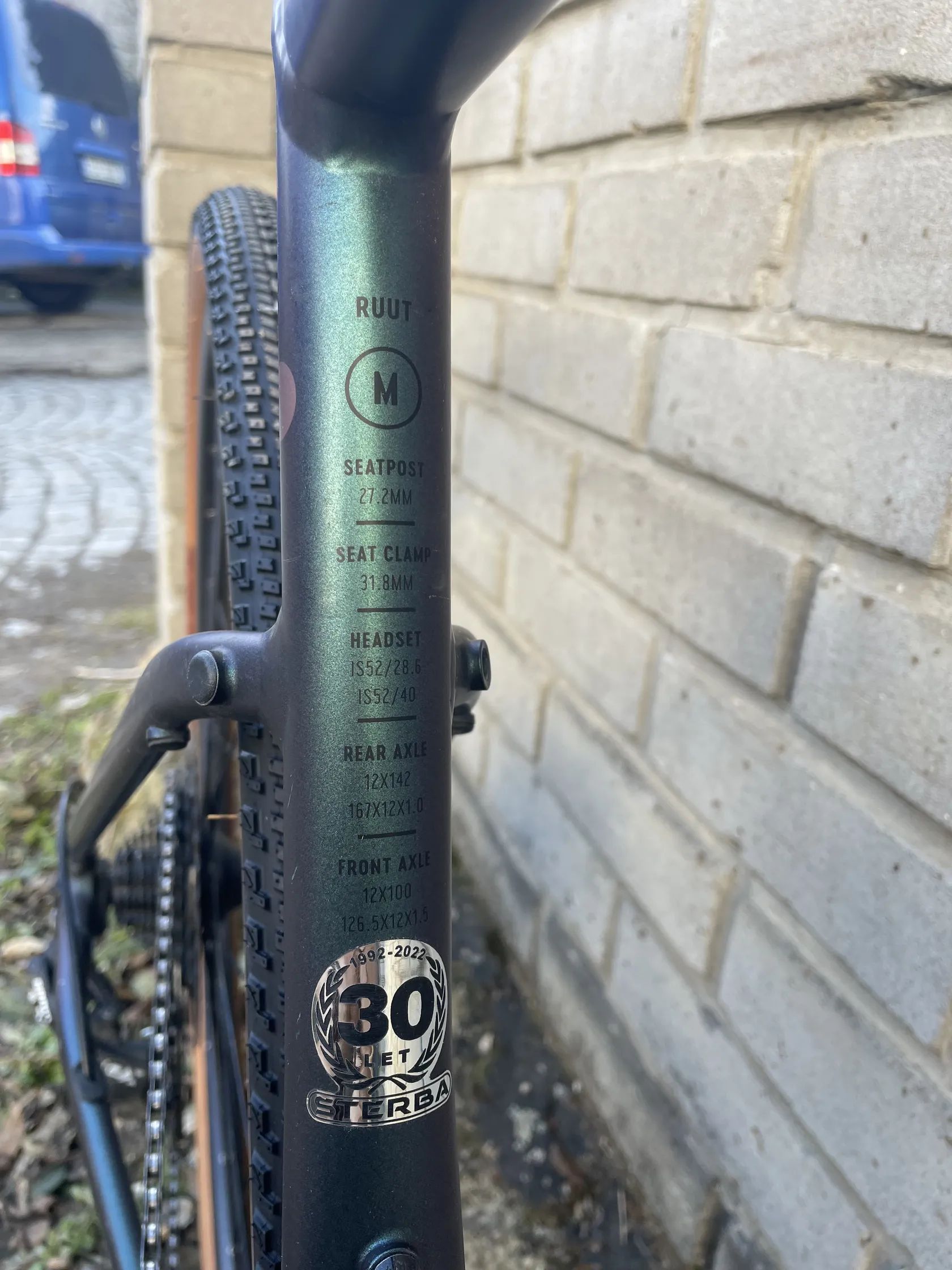 Jediný neduh je lehké odření gumy na řiditkách a odřená rámová patka, v roce 2024 mi to v zatáčce podklouzlo, jsou to vady čistě kosmetické.