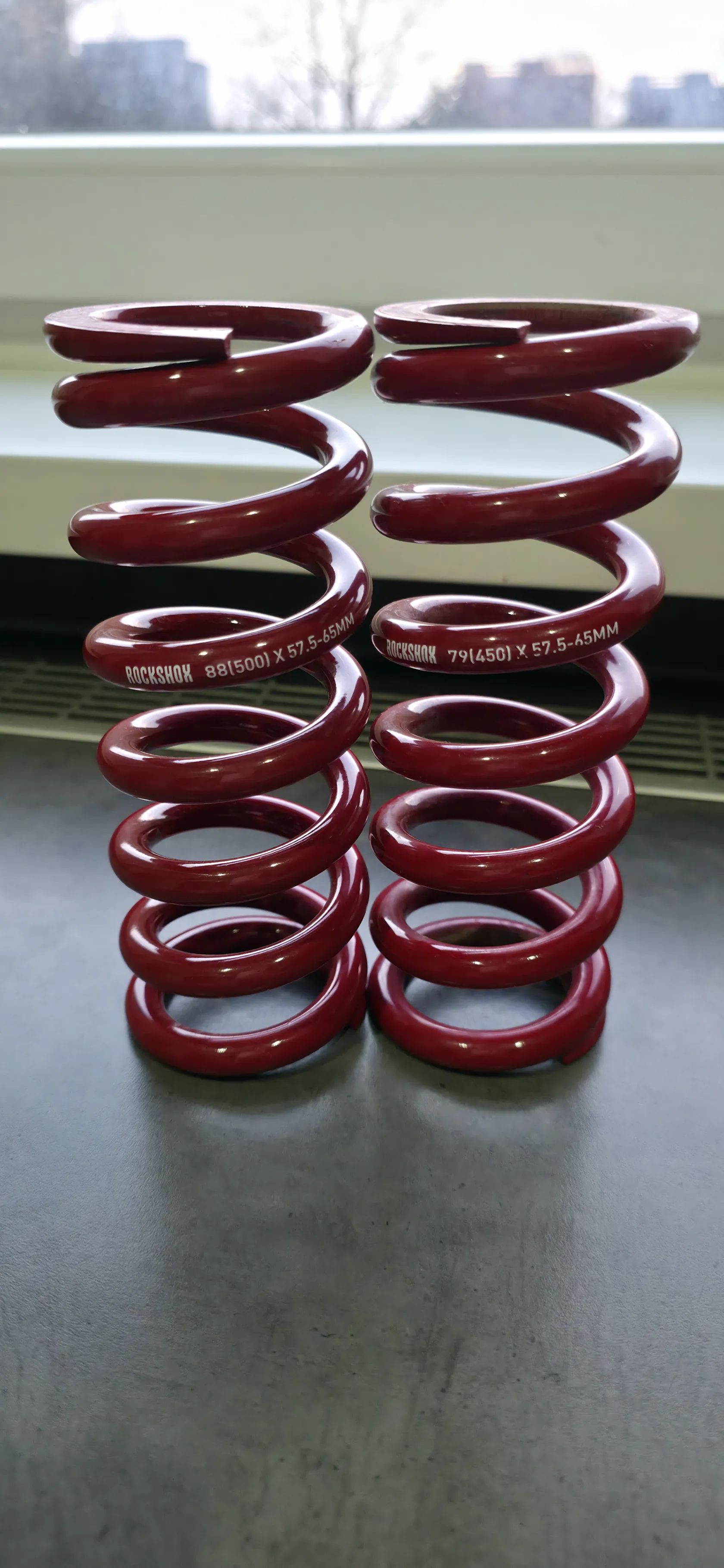 Prodám pružiny rockshot red 57.5-65mm. 1X400 a 1X500. 350kč za kus.