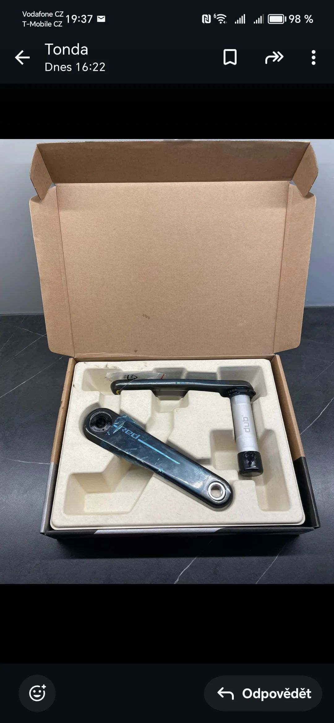 Prodám nové karbonové silniční kliky Sram Red AXS E1 2025, délka 175mm, bez převodníků. Osa DUB, koupeno v ČR, faktura.
