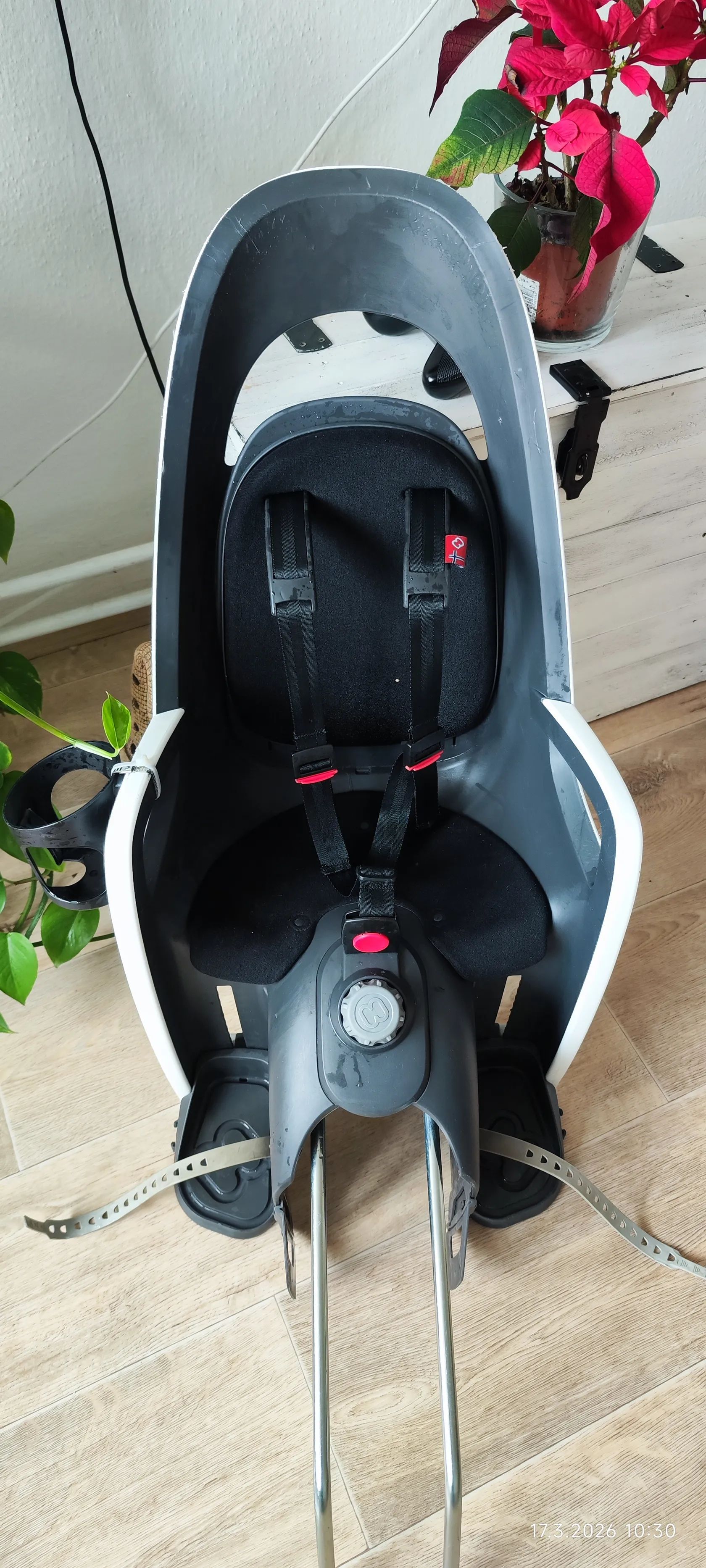 Nastavitelná výška opěrky Pozice spaní nastavitelná (20°) Integrované polstrování zad Stupačky k jednoručnému nastavení Nový systém pásu s ramenními vycpávkami Reflexní zadní strana K montáži na jízdní kola s nebo bez nosiče Uzamykatelný držák Rozměr: 95 x 38 x 29,5 cm