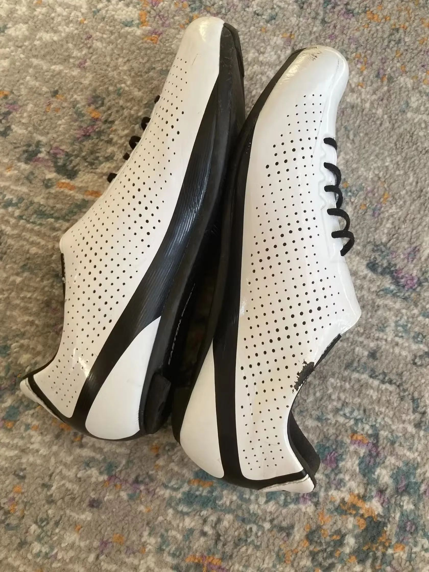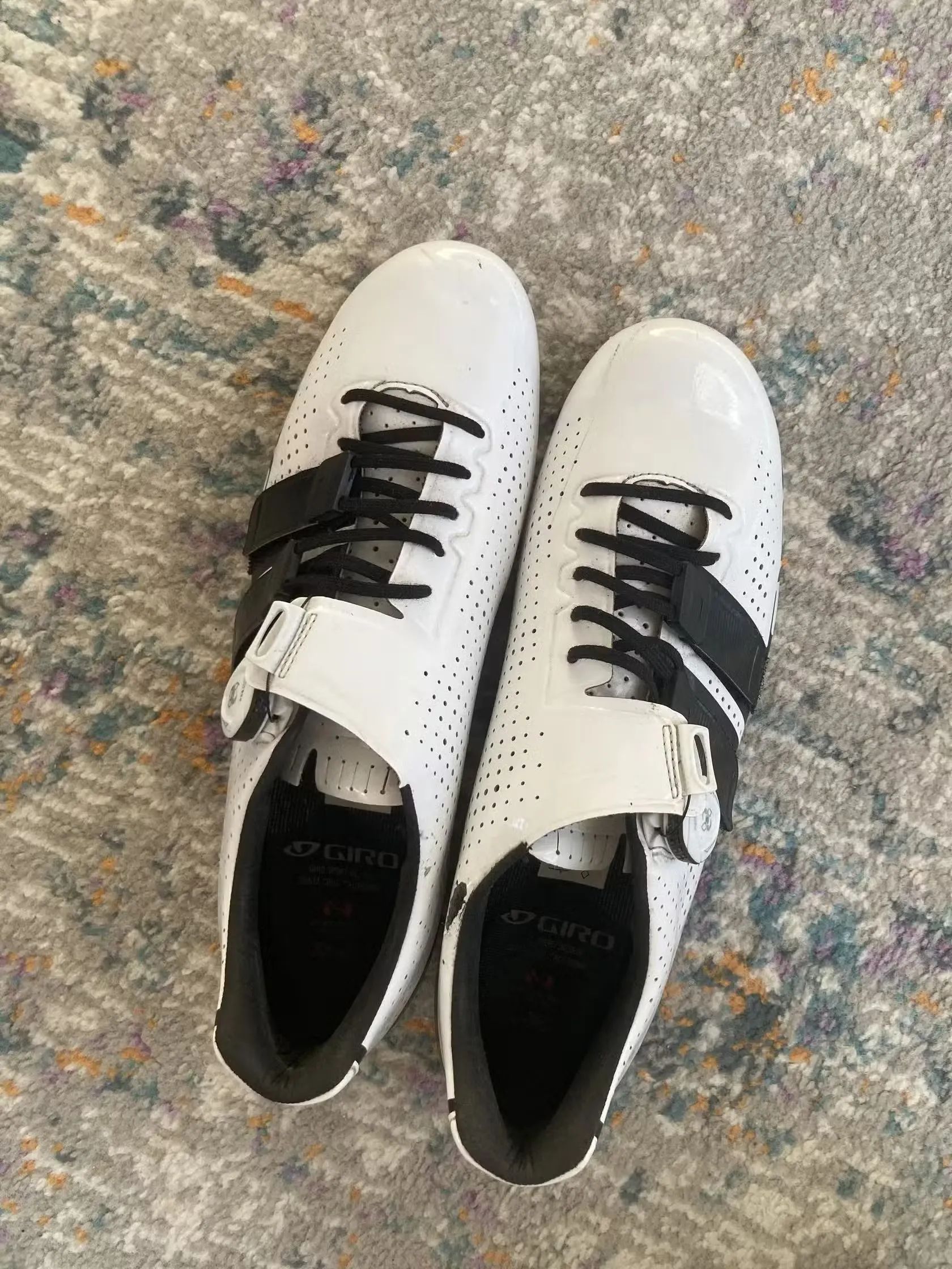 Dobrý den prodám Tretry GIRO Factor Techlace White/Black velikost 44. Plně funkční ve velmi dobrém stavu, jeté pouze jednu sezonu. Popis: Nekompromisní závodní silniční tretra s karbonovou podrážkou Easton EC90 SLX 2, patentovaným systémem Techlace a kolečkem Boa IP1 s možným nastavením +-1mm.