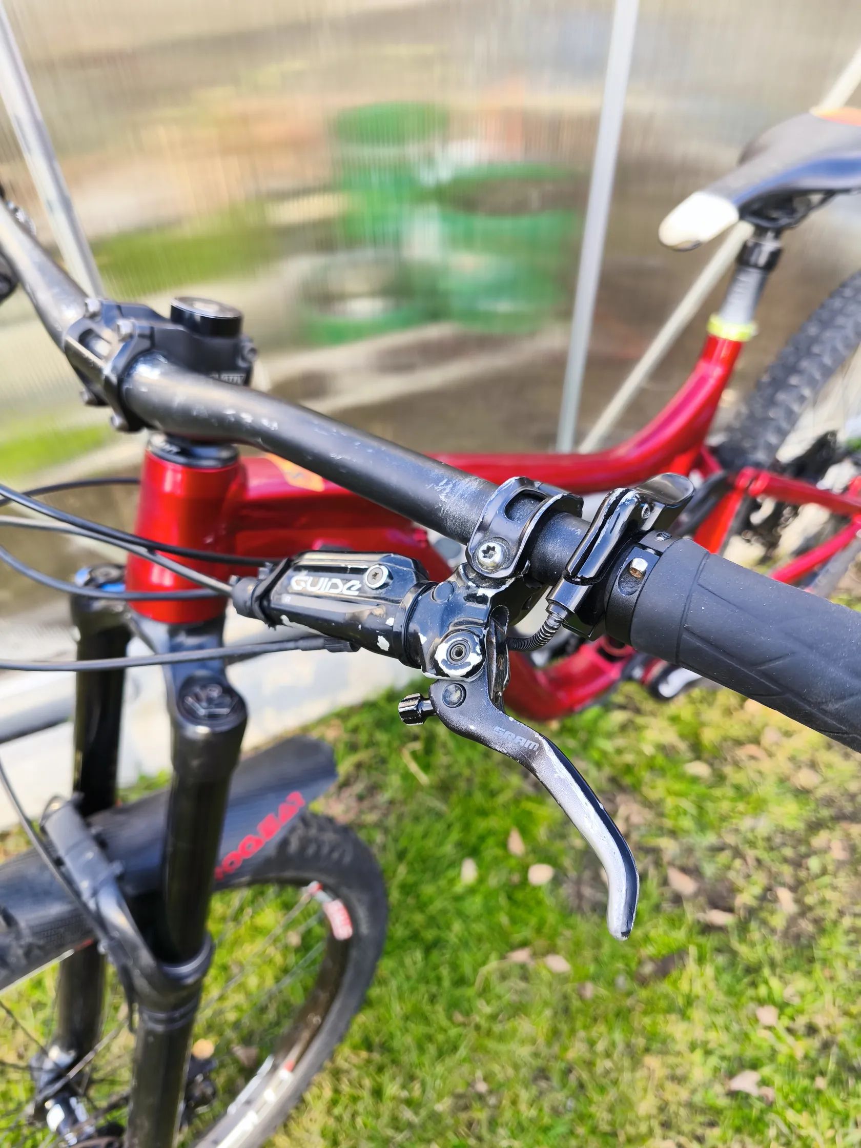Sram Guide + kotouče Magura 203/180 mm (vzadu nový kotouč a destičky) – silné brzdění pro sjezdy